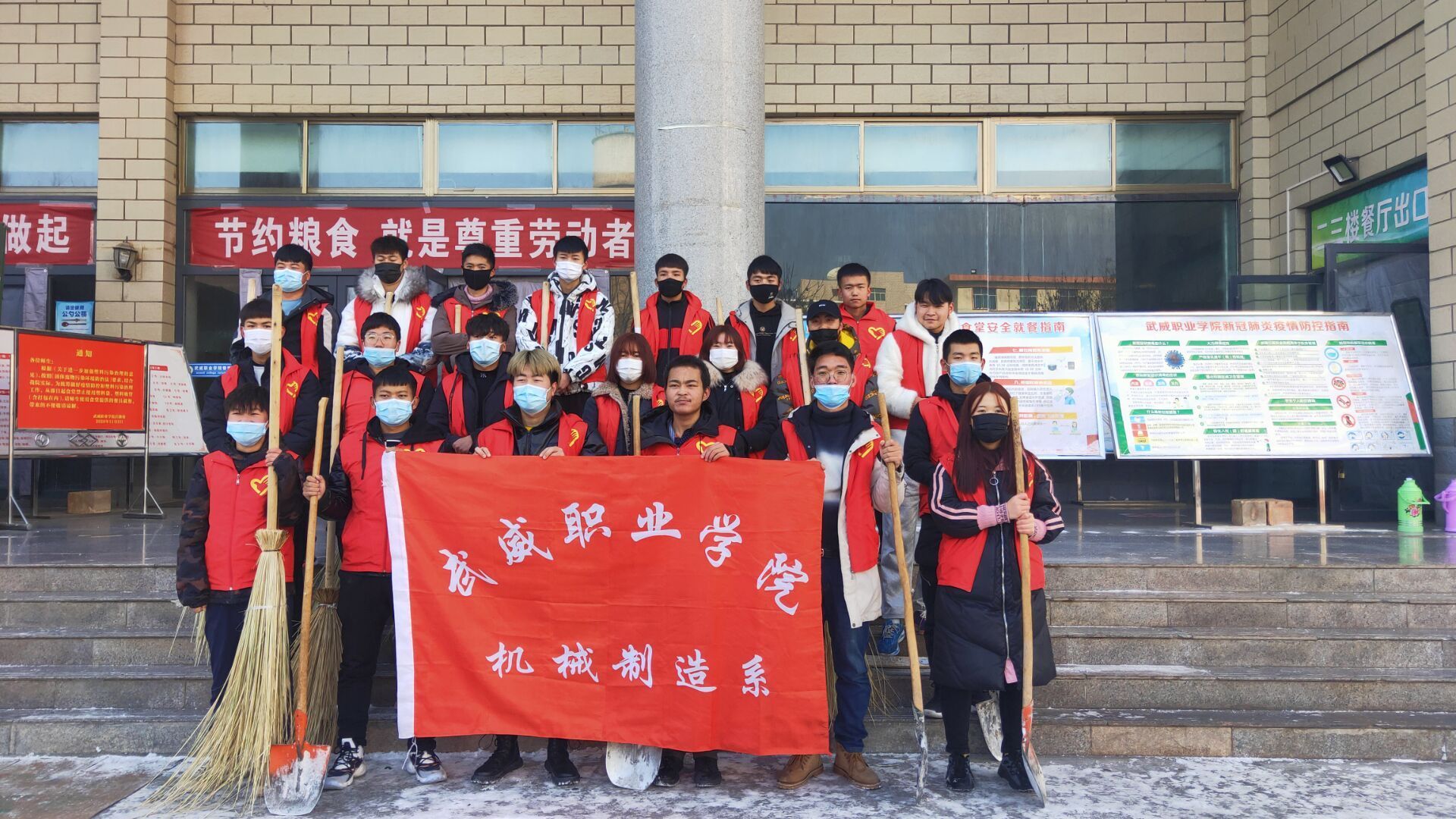 本次鏟雪的區(qū)域是教學(xué)樓區(qū)域的主干道和食堂門前道路。寒冷的天氣擋不住大家的勞動(dòng)熱情,厚厚的冰塊蓋不住大家的志愿精神。鐵鍬聲此起彼伏,大家分工明確,相互合作,現(xiàn)場(chǎng)氣氛熱烈。經(jīng)過多小時(shí)的勞動(dòng),大家將教學(xué)樓前主干道積雪基本清掃干凈。