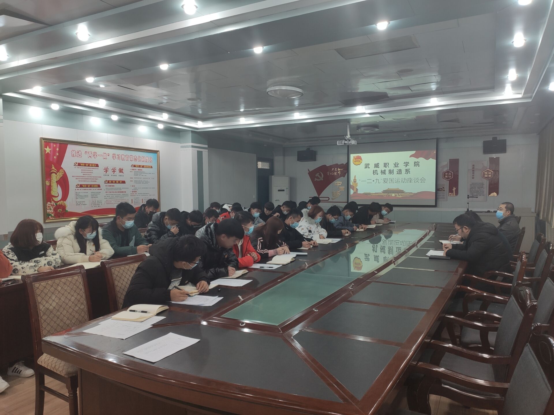 為了紀(jì)念“一二·九”愛(ài)國(guó)運(yùn)動(dòng),我系于2020年12月9日,在博學(xué)樓二樓黨員活動(dòng)室召開(kāi)了武威職業(yè)學(xué)院機(jī)械制造系“一二·九”愛(ài)國(guó)運(yùn)動(dòng)座談會(huì),參會(huì)人員有大二團(tuán)學(xué)委員會(huì)全體成員以及18級(jí)、19級(jí)、20級(jí)各班團(tuán)支書(shū)。