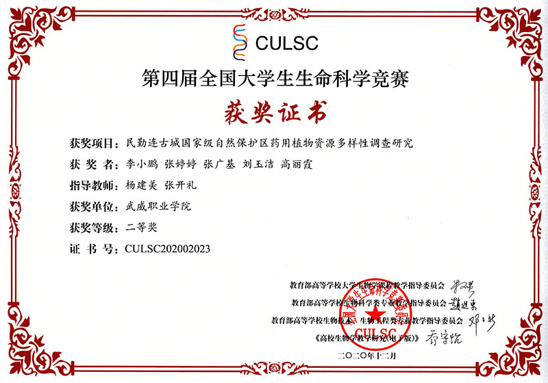 近日,第四屆全國大學(xué)生生命科學(xué)競賽落下帷幕,經(jīng)過激烈角逐,我院推薦參賽的兩個項(xiàng)目獲得全國二等獎三等獎,學(xué)院成為省內(nèi)獲得此次全國比賽獎項(xiàng)的唯一高職院校。在此前舉辦的甘肅賽區(qū)比賽中,我院兩個項(xiàng)目獲得甘肅省一等獎1項(xiàng),二等獎1項(xiàng),被推薦參加全國總決賽。此次獲得全國競賽獲獎不僅填補(bǔ)了我院學(xué)生在全國競賽中獲獎的空白,也為學(xué)院創(chuàng)建“雙高”院校增添了重要成果。