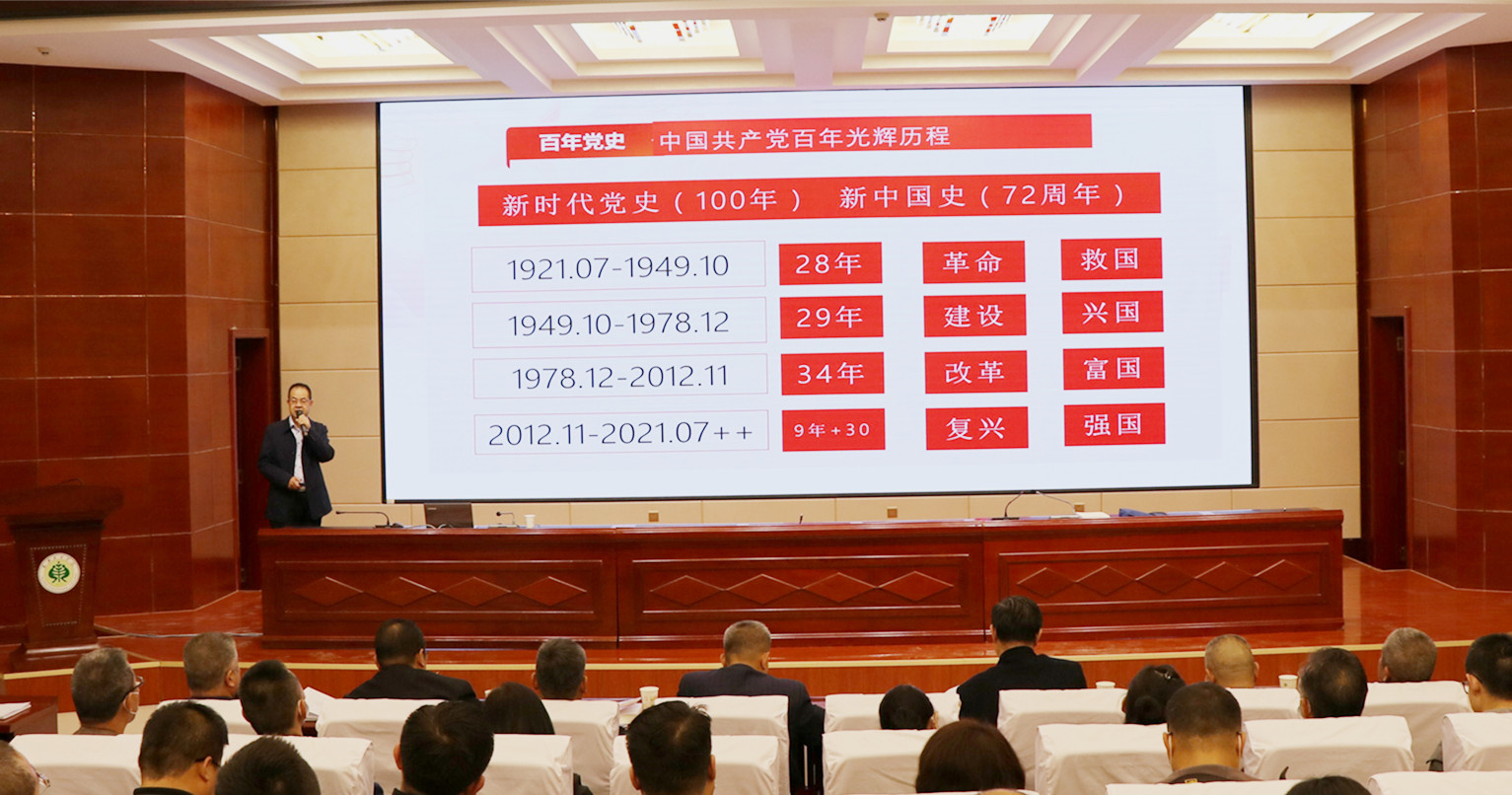 報(bào)告中,翟存祥教授帶領(lǐng)大家再次學(xué)習(xí)了習(xí)近平總書記在黨史學(xué)習(xí)教育動(dòng)員大會(huì)上的講話,進(jìn)一步明確了開展黨史學(xué)習(xí)教育的重大意義。報(bào)告將中國共產(chǎn)黨百年歷程分為“開天辟地,新民主主義革命時(shí)期;改天換地,社會(huì)主義革命和建設(shè)時(shí)期;翻天覆地,改革開放和現(xiàn)代化建設(shè)時(shí)期;驚天動(dòng)地,中國特色社會(huì)主義新時(shí)代”四個(gè)歷史發(fā)展階段。從只有中國共產(chǎn)黨才能拯救中國,中國人民站起來了;只有中國共產(chǎn)黨才能發(fā)展中國,中國人民富起來了;只有中國共產(chǎn)黨才能治理中國,中國人民強(qiáng)起來了;堅(jiān)持中國共產(chǎn)黨的全面領(lǐng)導(dǎo),新中國取得巨大成就等四個(gè)方面深刻闡述了中國共產(chǎn)黨百年奮斗的光輝歷程和取得的偉大成就,系統(tǒng)梳理總結(jié)了黨帶領(lǐng)人民推進(jìn)革命、建設(shè)、改革的寶貴經(jīng)驗(yàn)和長期奮斗中鑄就的偉大精神。