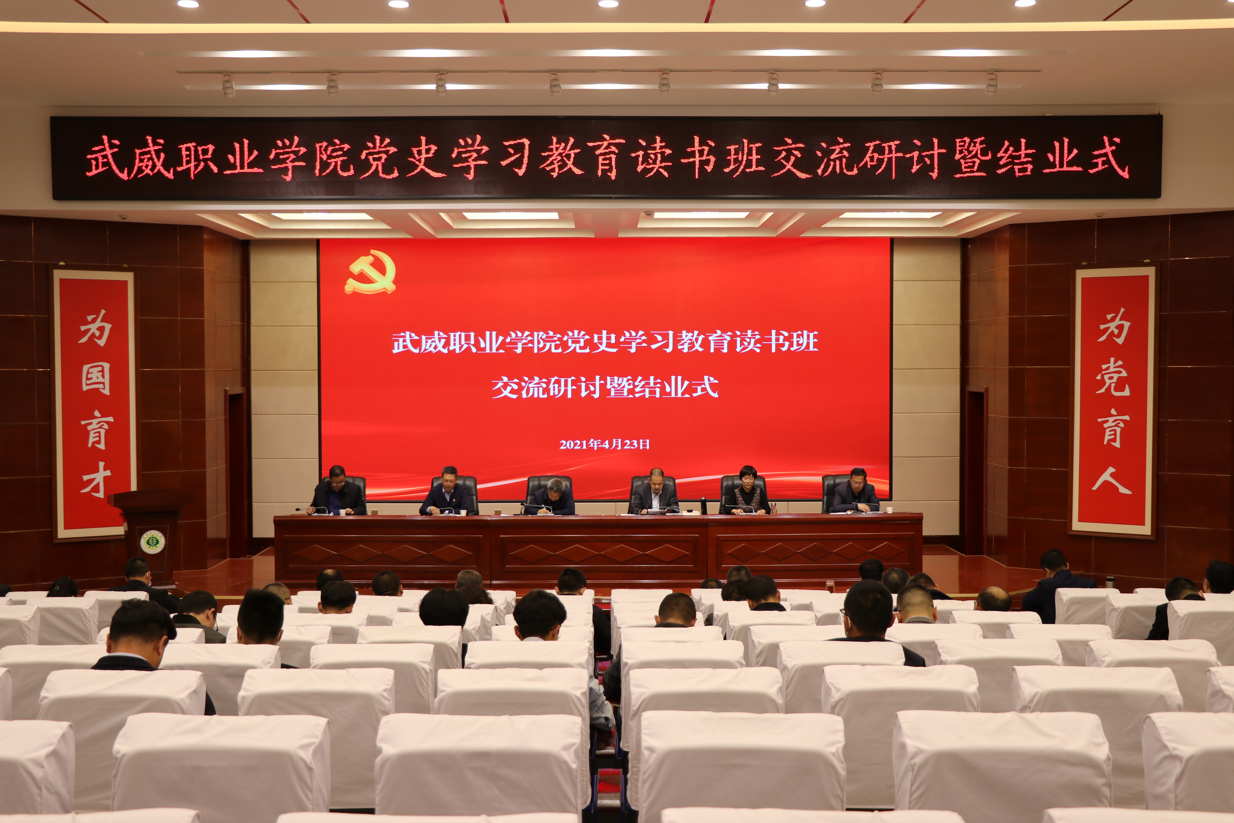 4月23日下午,學(xué)院黨委理論學(xué)習(xí)中心組黨史學(xué)習(xí)教育讀書(shū)班交流研討會(huì)暨結(jié)業(yè)式在大學(xué)生活動(dòng)中心菁英廳舉行。學(xué)院領(lǐng)導(dǎo)班子成員、全體中層干部、各基層黨組織書(shū)記、專職組織員和支委委員參加會(huì)議。黨委書(shū)記、院長(zhǎng)趙明主持結(jié)業(yè)式并講話。