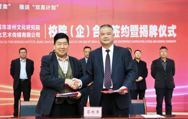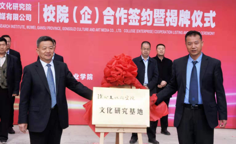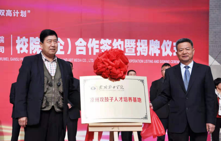 4月27日,學(xué)院與武威市涼州文化研究院、甘肅武威攻鼓子文化藝術(shù)傳媒有限公司“校(院)企戰(zhàn)略合作”簽約暨揭牌儀式在學(xué)院圖書(shū)館前廣場(chǎng)舉行。