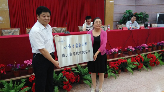 頒發(fā)“甘肅中醫(yī)藥大學成人高等教育教學點”牌匾