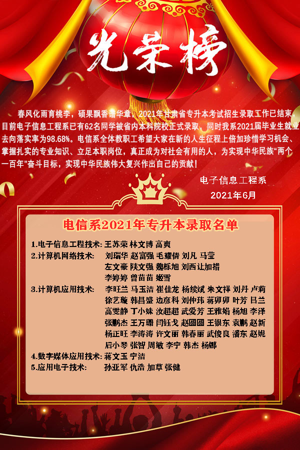 電子信息工程系2021屆畢業(yè)生專升本錄取光榮榜