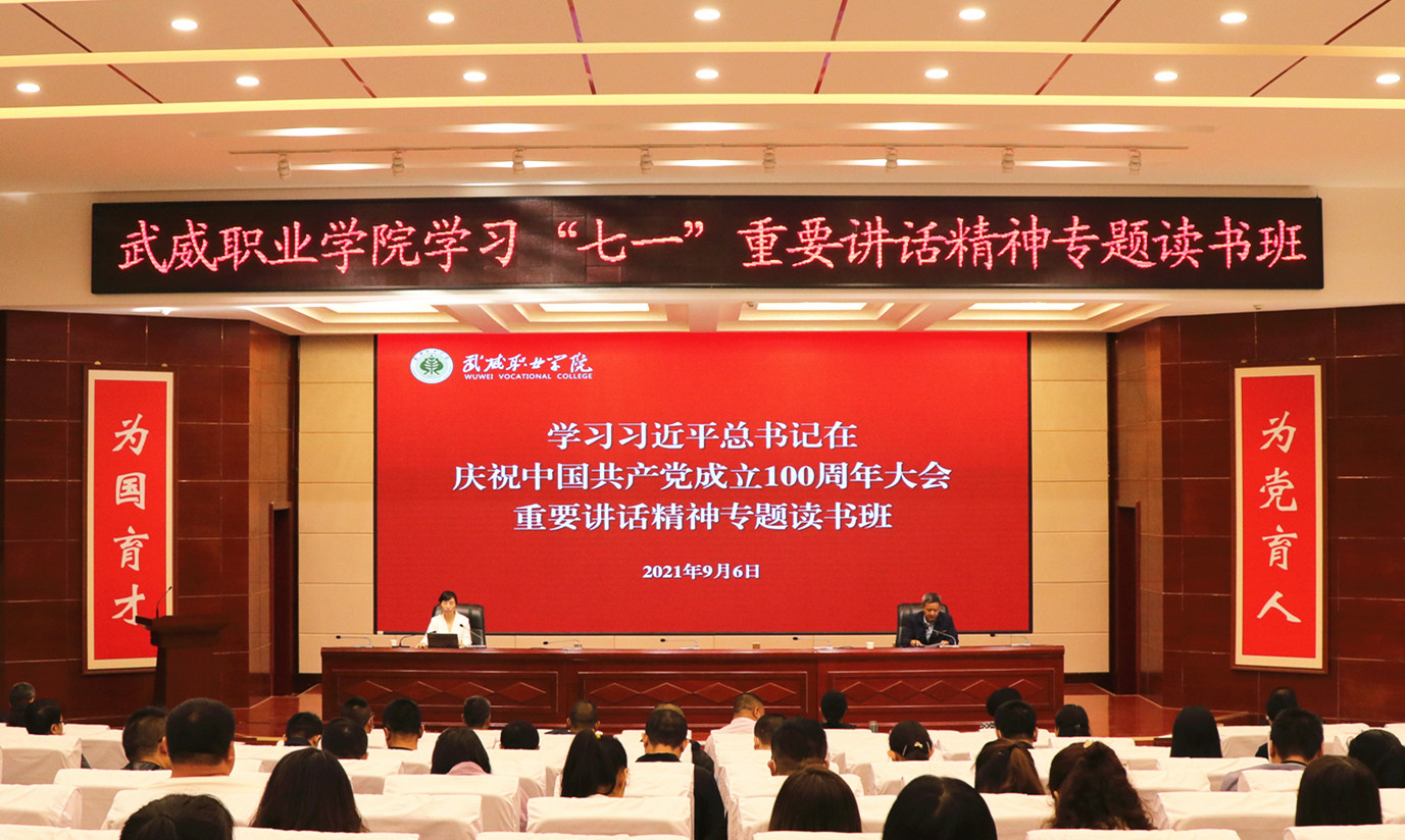 讀書班邀請(qǐng)市委黨史宣傳團(tuán)成員、甘肅畜牧工程職業(yè)技術(shù)學(xué)院副教授羅海燕同志作專題輔導(dǎo)報(bào)告。羅海燕同志從深刻把握習(xí)近平總書記“七一”重要講話的重大意義、深刻把握習(xí)近平總書記“七一”重要講話的豐富內(nèi)涵、學(xué)習(xí)貫徹落實(shí)“七一”講話精神三個(gè)方面,對(duì)習(xí)近平總書記在慶祝中國共產(chǎn)黨成立100周年大會(huì)上的重要講話進(jìn)行了解讀,報(bào)告主題鮮明、內(nèi)涵豐富,給參加讀書班的黨員干部和師生作了一場(chǎng)精彩的專題輔導(dǎo)。