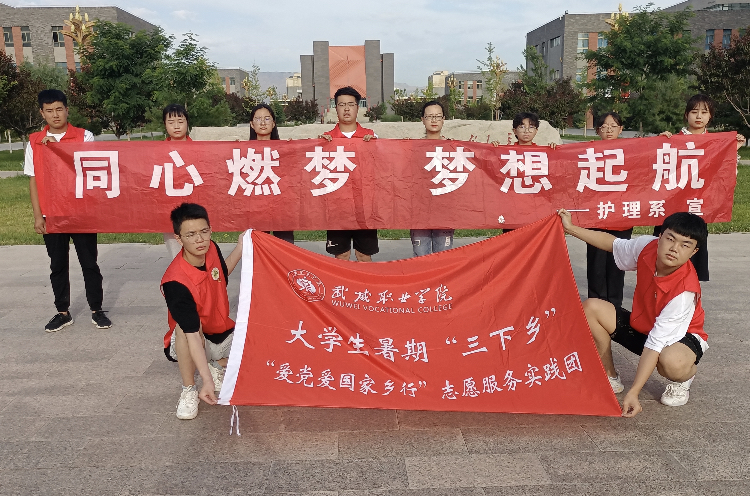 為認(rèn)真貫徹落實(shí)習(xí)近平總書記在慶祝中國共產(chǎn)黨成立100周年大會上的講話精神,不斷深化實(shí)踐育人,引領(lǐng)學(xué)生在社會實(shí)踐中受教育、長才干、作貢獻(xiàn),培養(yǎng)學(xué)生家國情懷和實(shí)踐能力,著眼于青年了解認(rèn)知鄉(xiāng)村情況,踴躍參與鄉(xiāng)村振興戰(zhàn)略實(shí)施,同時加強(qiáng)對大學(xué)生黨史、新中國史教育,鼓勵大學(xué)生青年志愿者向社區(qū)報道,7月15-21日,由武威職業(yè)學(xué)院護(hù)理系一名指導(dǎo)老師與本專業(yè)九位青年志愿者組成的“愛國家鄉(xiāng)行”一行十人分別前往武威市涼州區(qū)雙城鎮(zhèn)南安社區(qū)和敬老院開展主題為“同心燃夢、夢想起航”的暑期“三下鄉(xiāng)”活動。在炎炎夏日,志愿者的服務(wù)為社區(qū)居民和敬老院的老人帶去了一份愛心、一絲暖意。