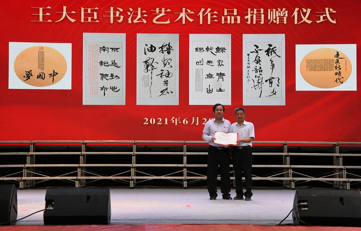 之后舉行了王大臣先生書法藝術(shù)作品捐贈(zèng)儀式,學(xué)院黨委書記、院長(zhǎng)趙明教授為王大臣先生頒發(fā)《收藏證書》。王大臣先生自愿將140多件書法藝術(shù)作品無償捐贈(zèng)給我們學(xué)院,給我們留下了寶貴的精神財(cái)富,讓作品中蘊(yùn)含的紅色基因薪火相傳、血脈永續(xù)!