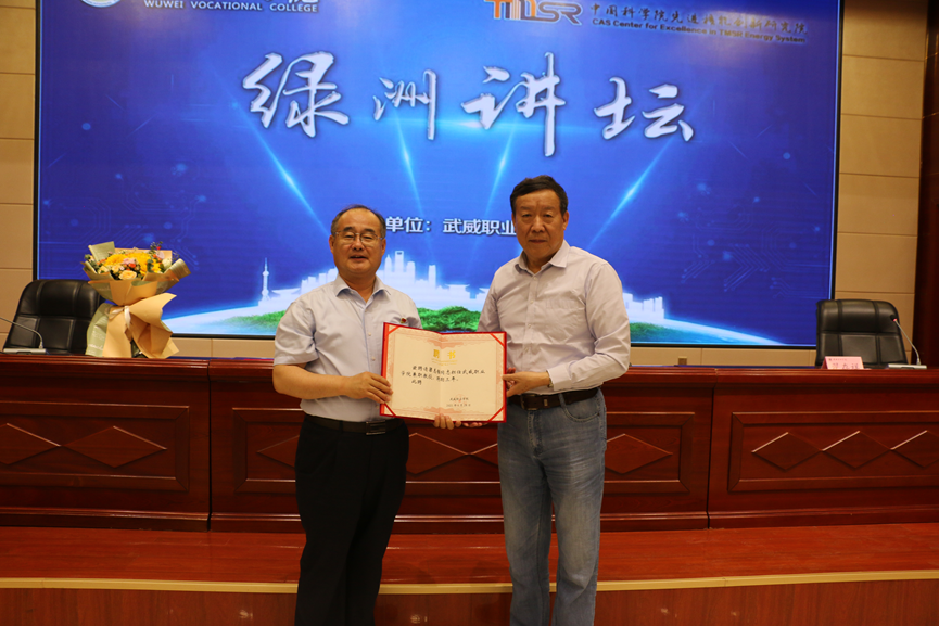 活動第二階段,由中科低碳新能源技術(shù)學(xué)院院長楊存忠為梁志強頒發(fā)了聘請其擔(dān)任武威職業(yè)學(xué)院中科低碳新能源技術(shù)學(xué)院專業(yè)建設(shè)指導(dǎo)委員會委員和武威職業(yè)學(xué)院兼職教授。梁主任還與在場師生進行了愉快的溝通互動環(huán)節(jié),從未來就業(yè)工作和專業(yè)建設(shè)方面為師生答疑解惑。
