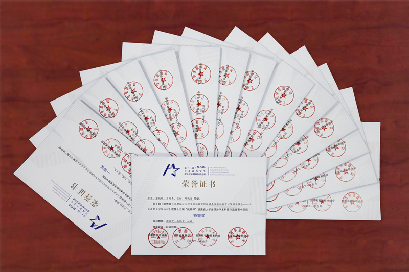 近期,省教育廳和團(tuán)省委等4部門聯(lián)合下發(fā)了《關(guān)于第十三屆“挑戰(zhàn)杯”甘肅省大學(xué)生課外學(xué)術(shù)科技作品競賽獲獎情況的通報》,我院在本屆大賽中再創(chuàng)佳績,在主賽道中,我院遴選參賽32件作品,獲特等獎1項、一等獎2項、二等獎5項、三等獎14項;在紅色專項賽中,我院遴選推送6件作品,獲二等獎3項、三等獎3項;總成績位列職業(yè)院校前列,學(xué)院再次捧得“優(yōu)秀組織獎”。