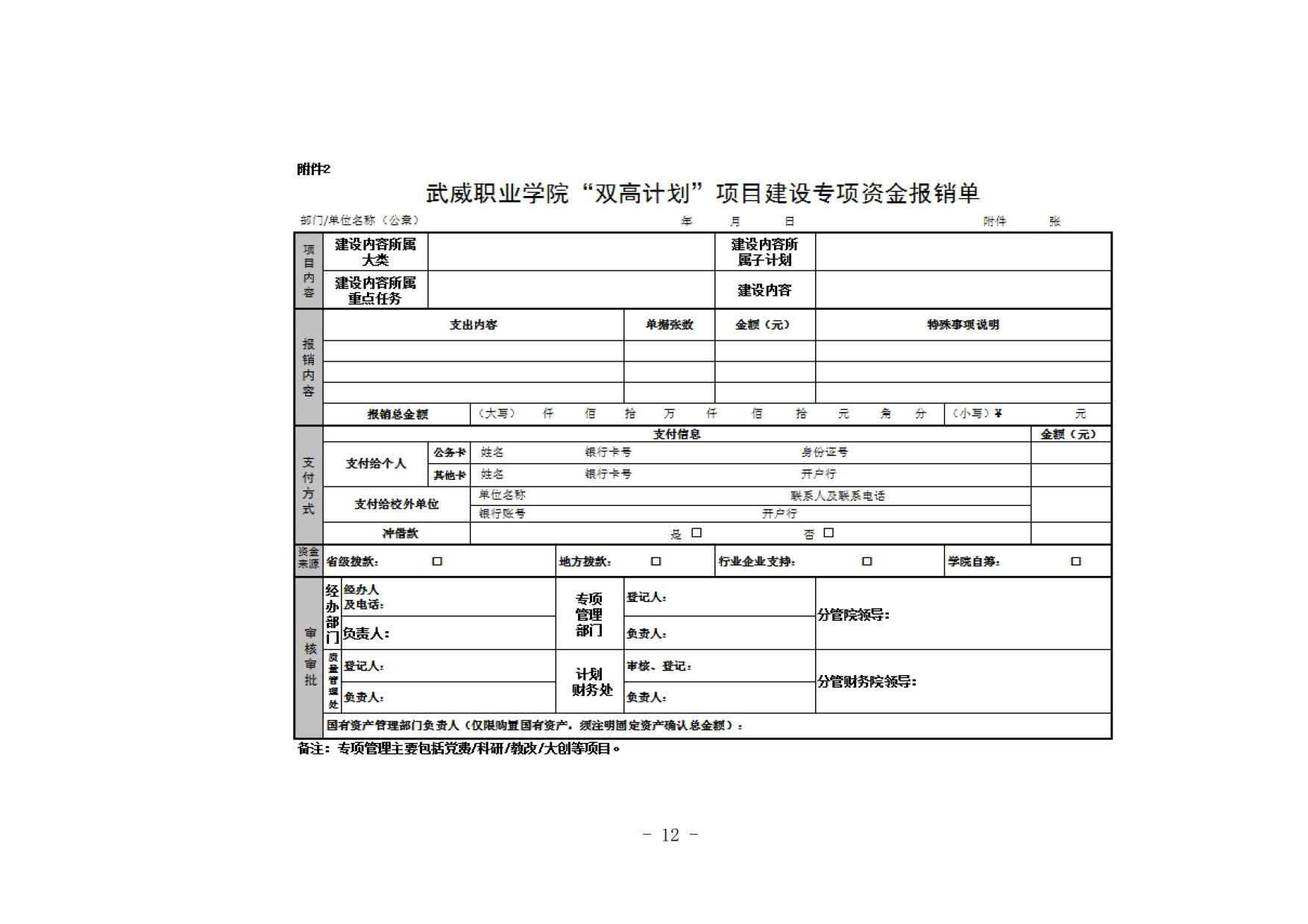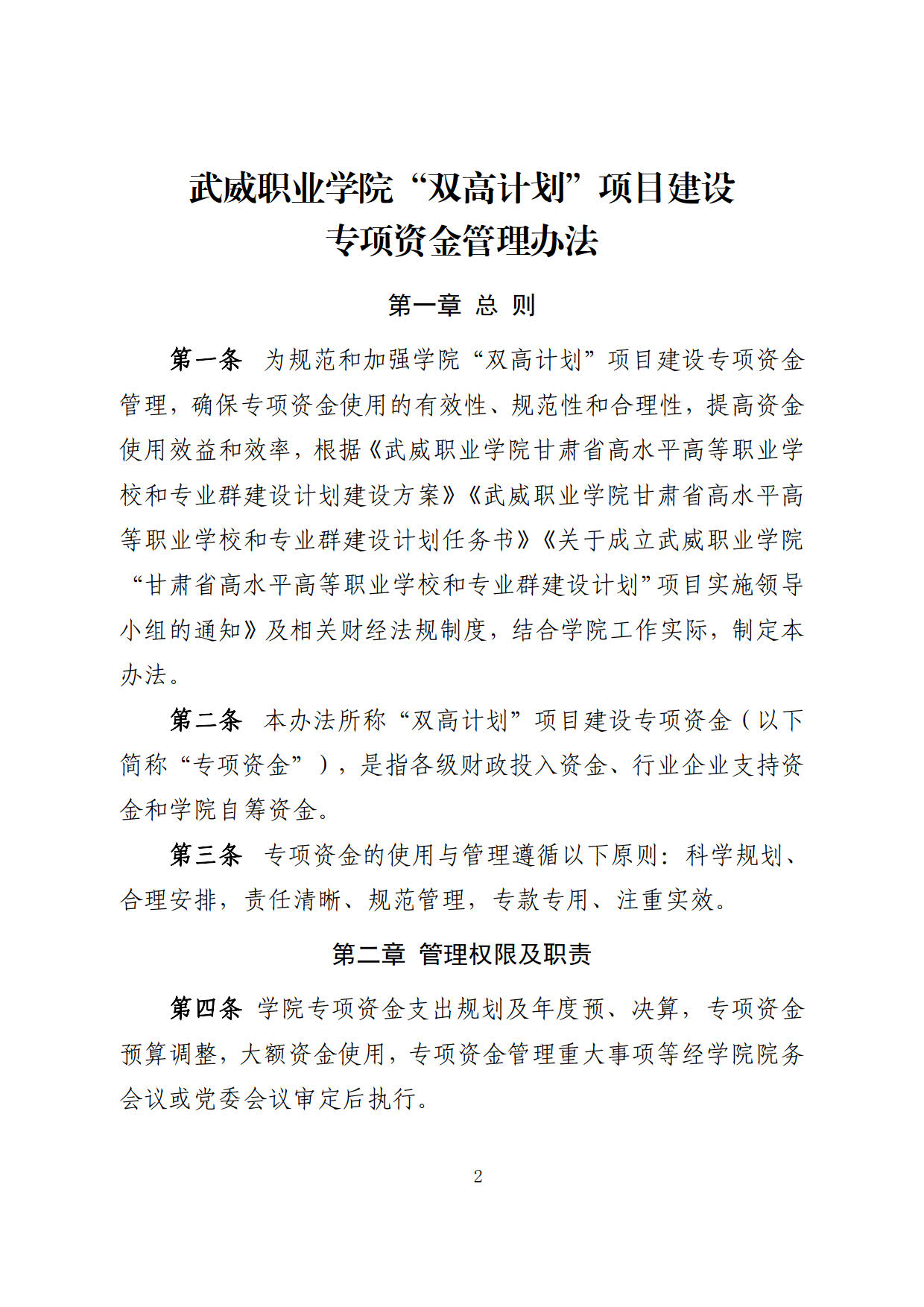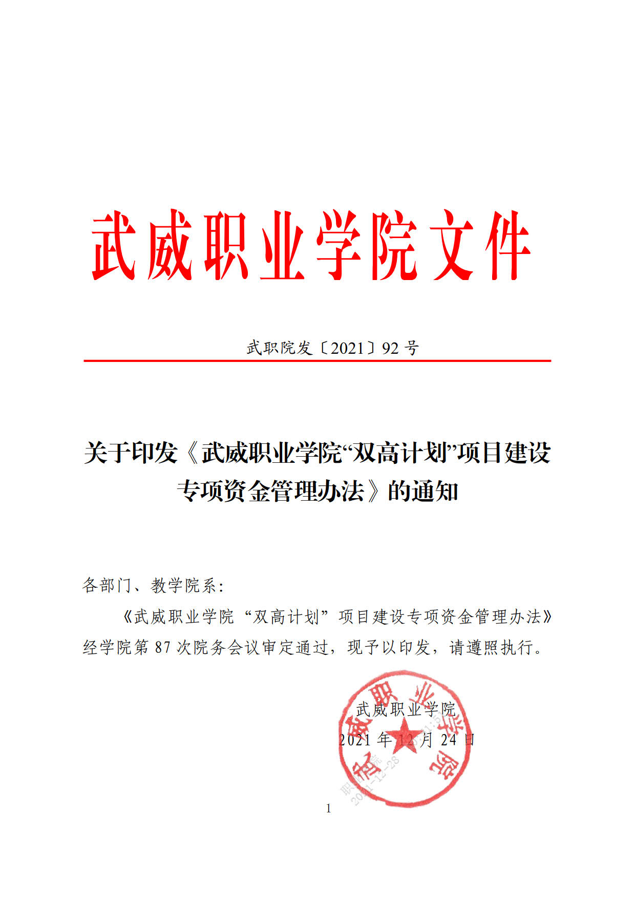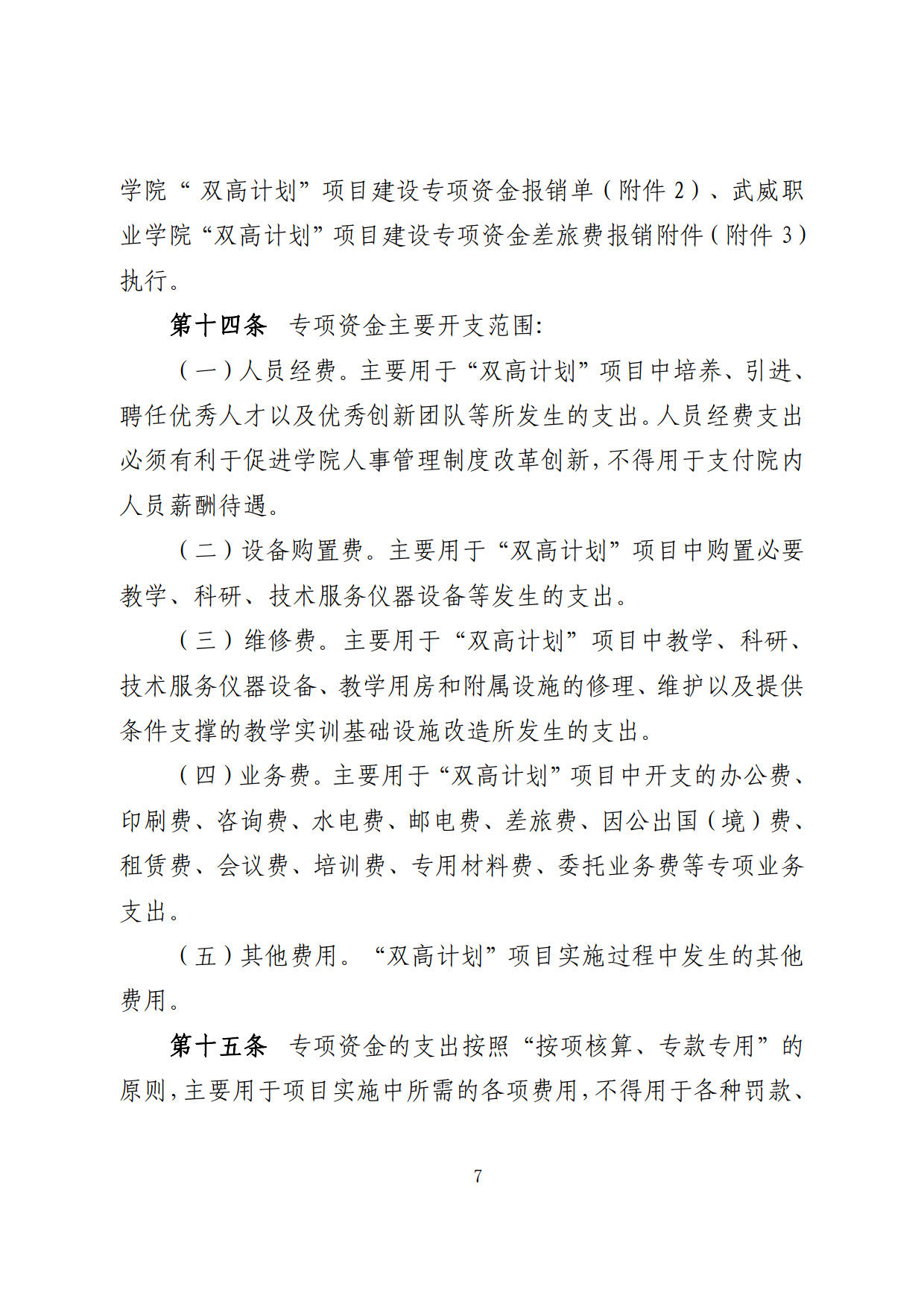 關(guān)于印發(fā)《武威職業(yè)學(xué)院“雙高計(jì)劃”項(xiàng)目建設(shè)專(zhuān)項(xiàng)資金管理辦法》的通知