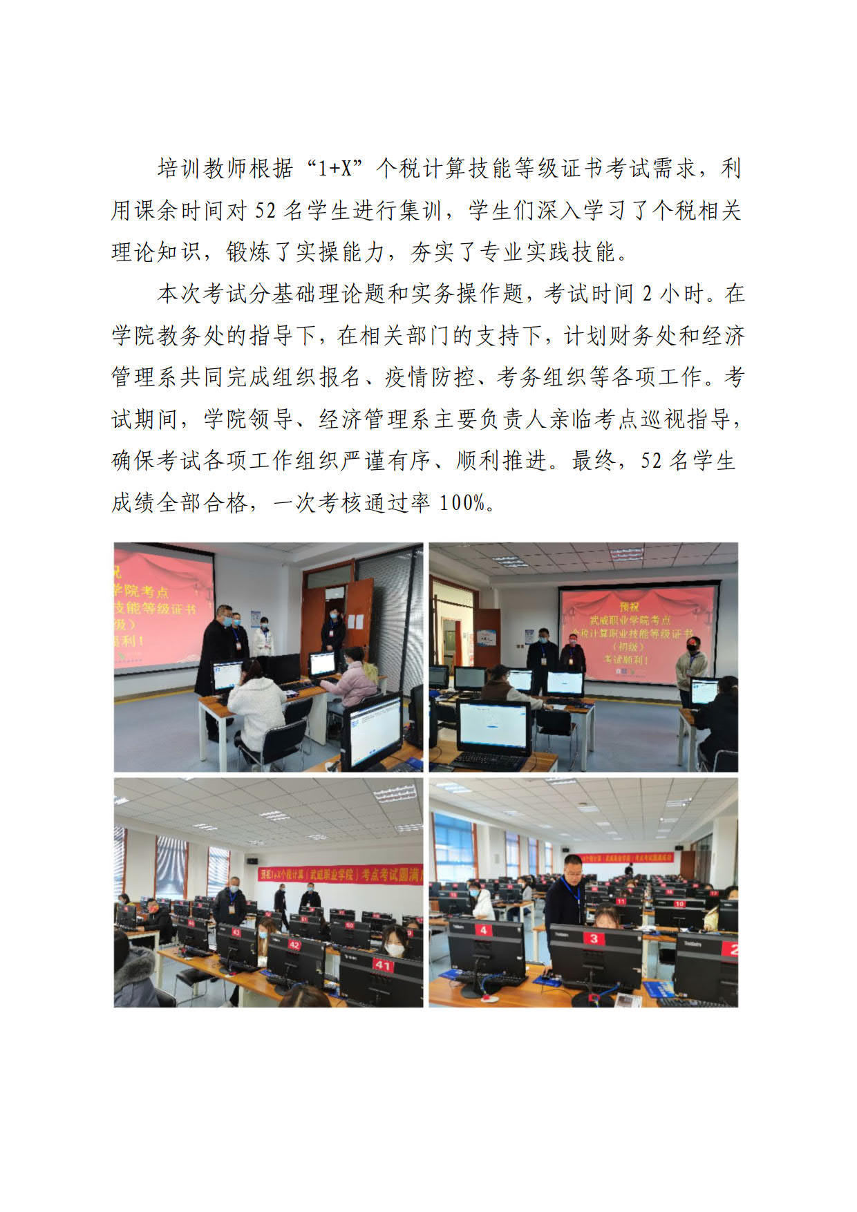 學院“1+X”個稅計算職業(yè)技能考試以100%的通過率圓滿完成