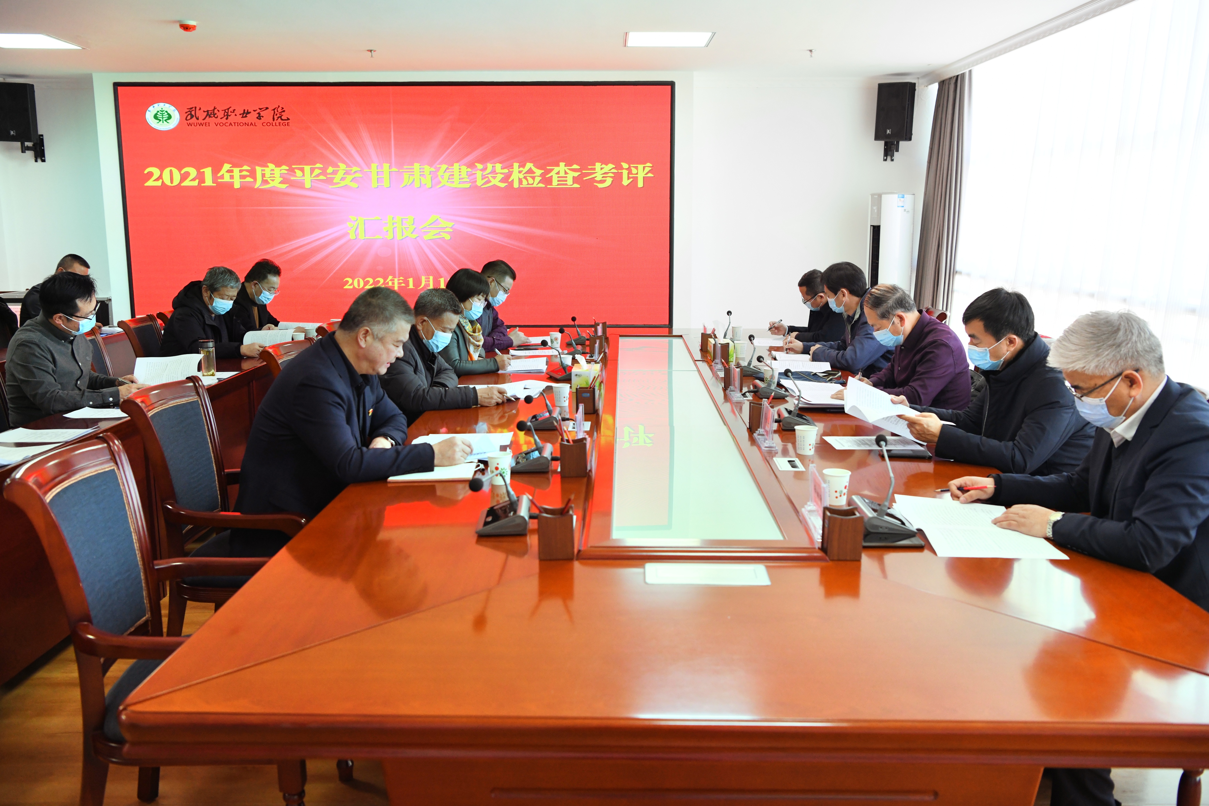 1月13日下午,平安甘肅建設(shè)工作第八考評(píng)組在省高等學(xué)校服務(wù)中心主任崔亮的帶領(lǐng)下來(lái)校實(shí)地檢查考評(píng)2021年度平安校園建設(shè)工作。市委政法委常務(wù)副書記連林中,學(xué)院黨委書記、院長(zhǎng)趙明,黨委委員、副院長(zhǎng)何毅,黨委委員、紀(jì)委書記、監(jiān)察專員陳曉煜,黨委委員、副院長(zhǎng)王守云陪同檢查考評(píng)。