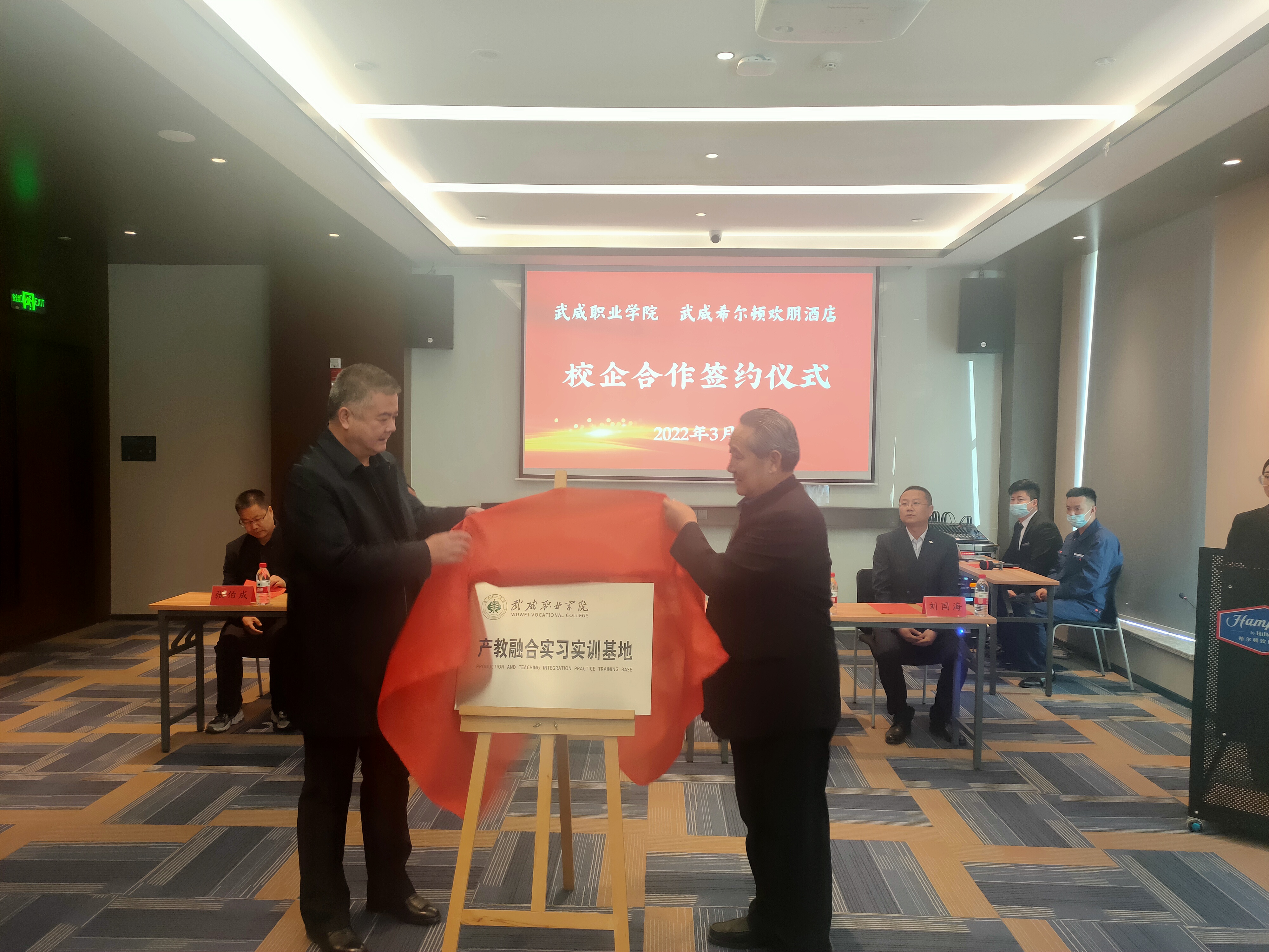 為深入貫徹落實教育部2022屆普通高校畢業(yè)生就業(yè)創(chuàng)業(yè)網(wǎng)絡(luò)視頻會議精神,統(tǒng)一思想,提高認識,服務(wù)學(xué)院“雙高計劃”建設(shè),3月2日,學(xué)院與武威希爾頓歡朋酒店舉行校企合作揭牌暨簽約儀式,副校長王守云代表學(xué)院出席簽約儀式。