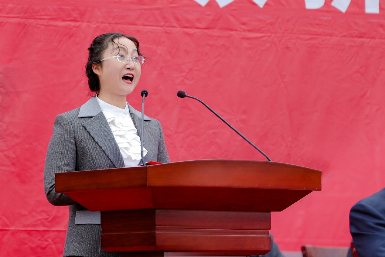 上午9時(shí),大會在莊嚴(yán)的國歌聲中拉開序幕,二十余名學(xué)生代表致獻(xiàn)詞《請黨放心,強(qiáng)國有我》,用最飽滿的聲音,堅(jiān)定地向黨道出了青春的誓言。