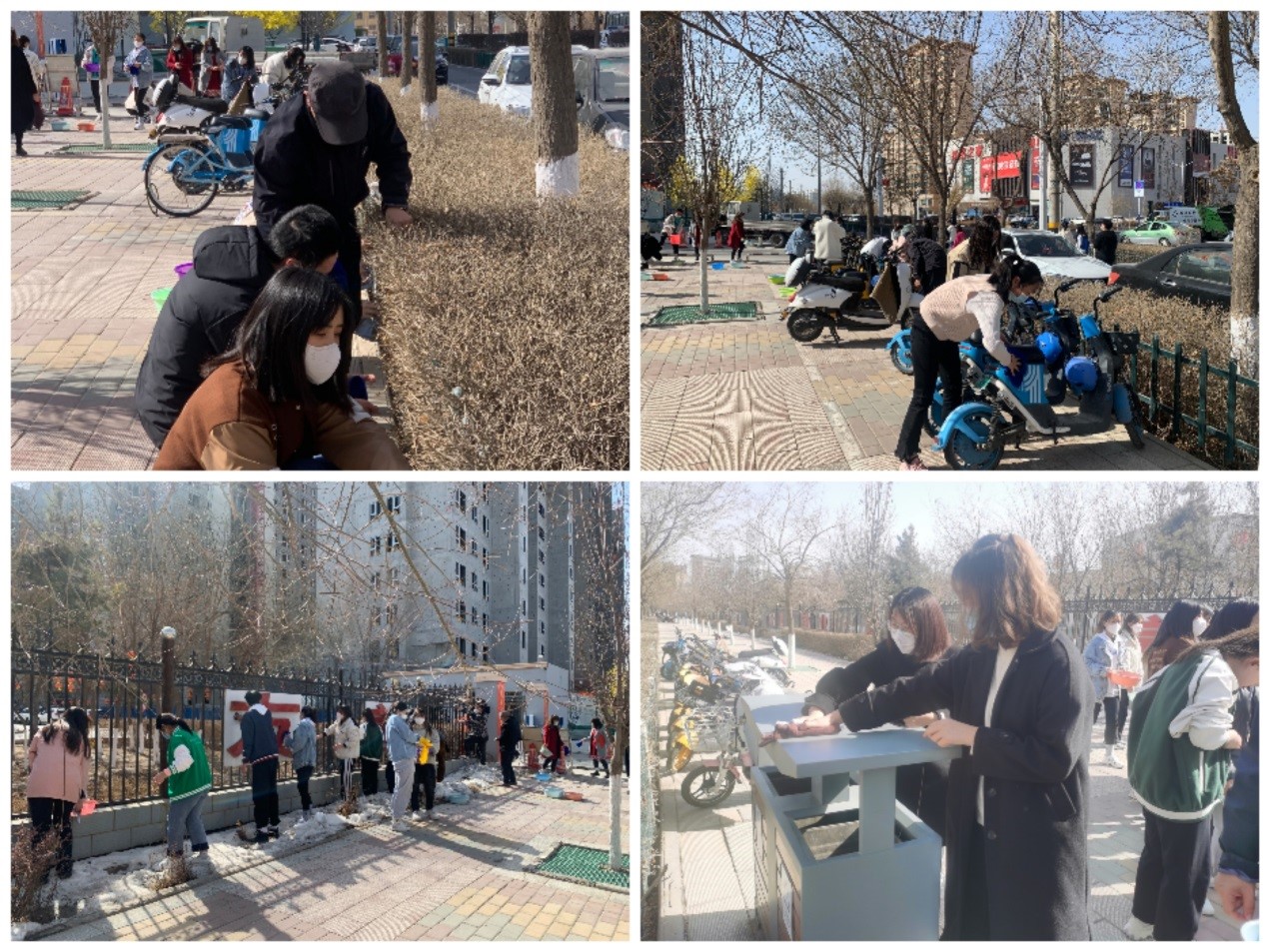志愿者們來到學(xué)院北大門前學(xué)府路與皇臺路交叉十字至小北門道路兩側(cè),在主干道擦洗綠化帶隔離欄、校園柵欄、展示牌、垃圾箱,擺放共享單車,打掃衛(wèi)生,開展學(xué)雷鋒志愿服務(wù)主題活動。
