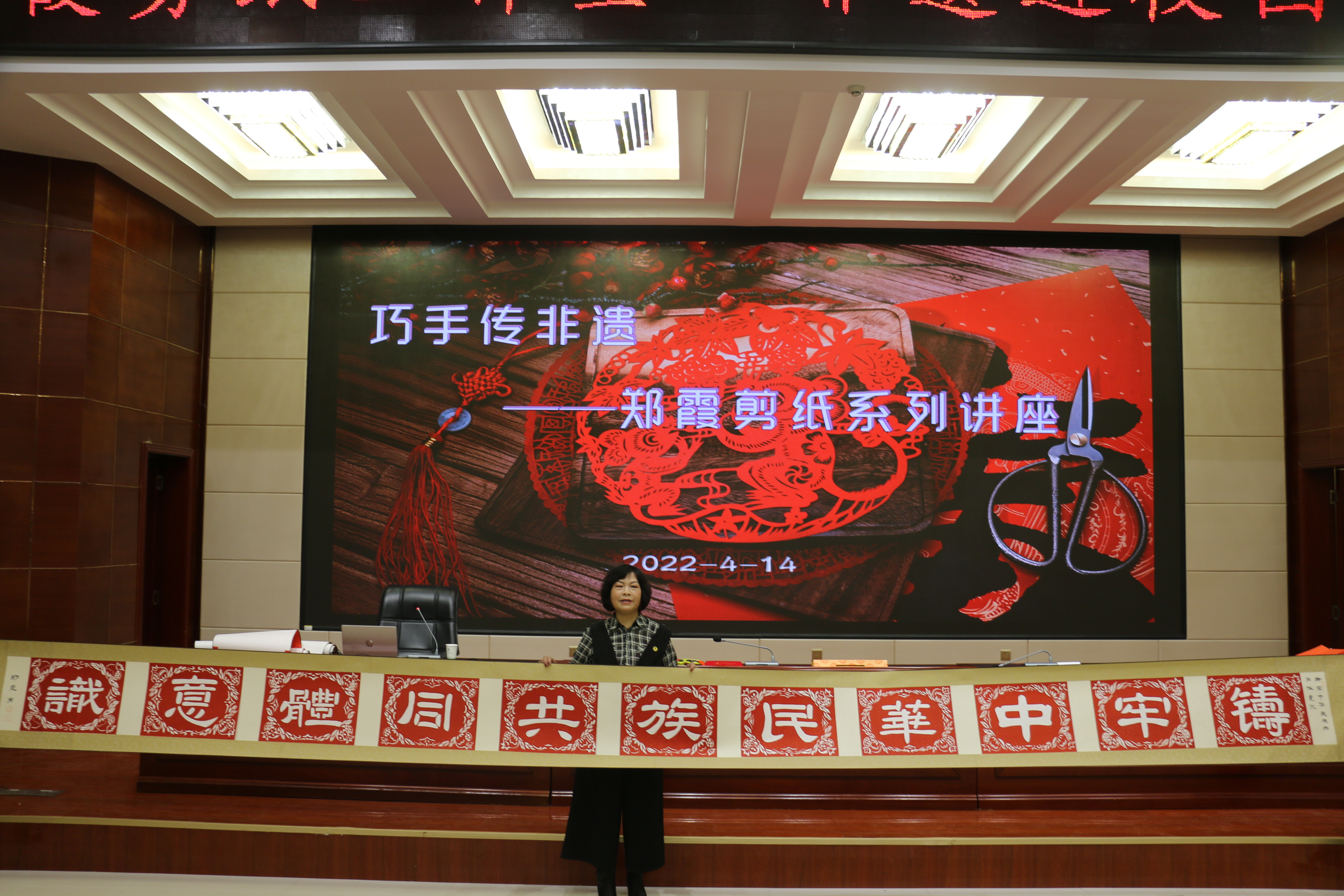 春和景明,草長鶯飛,在這萬物生長的季節(jié),文化傳承的種子也在拔節(jié)育穗。4月14日下午,中華優(yōu)秀傳統(tǒng)文化教學(xué)團隊及鄭霞剪紙工作室聯(lián)合在菁英廳舉辦了巧手傳非遺——鄭霞剪紙系列講座活動。