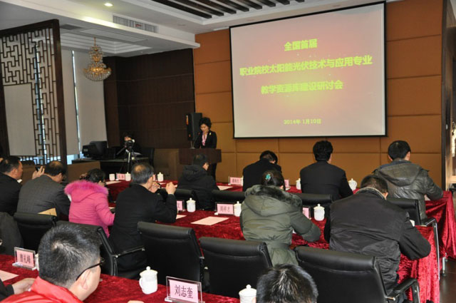 在研討會上,來自職業(yè)院校領導及光伏專業(yè)的專家教授分別對專業(yè)教學資源庫的建設提出了各自的意見及建議。中國職教學會校企合作工作委員會主任潘海生發(fā)表了重要講話。職教聯(lián)盟秘書長陳建民就聯(lián)盟2013年度工作進行了總結(jié),并對2014年度工作進行了規(guī)劃。無錫科技職業(yè)學院的曹建林教授就專業(yè)建設服務區(qū)域經(jīng)濟進行了深入淺出的分析。蘇州職業(yè)大學的曹豐文教授提出了對于教學資源庫建設目標與思路的意見與看法。無錫尚德公司副總裁朱景兵博士與在座的與會人士交流了怎樣對接企業(yè)培養(yǎng)技能人才的經(jīng)驗。