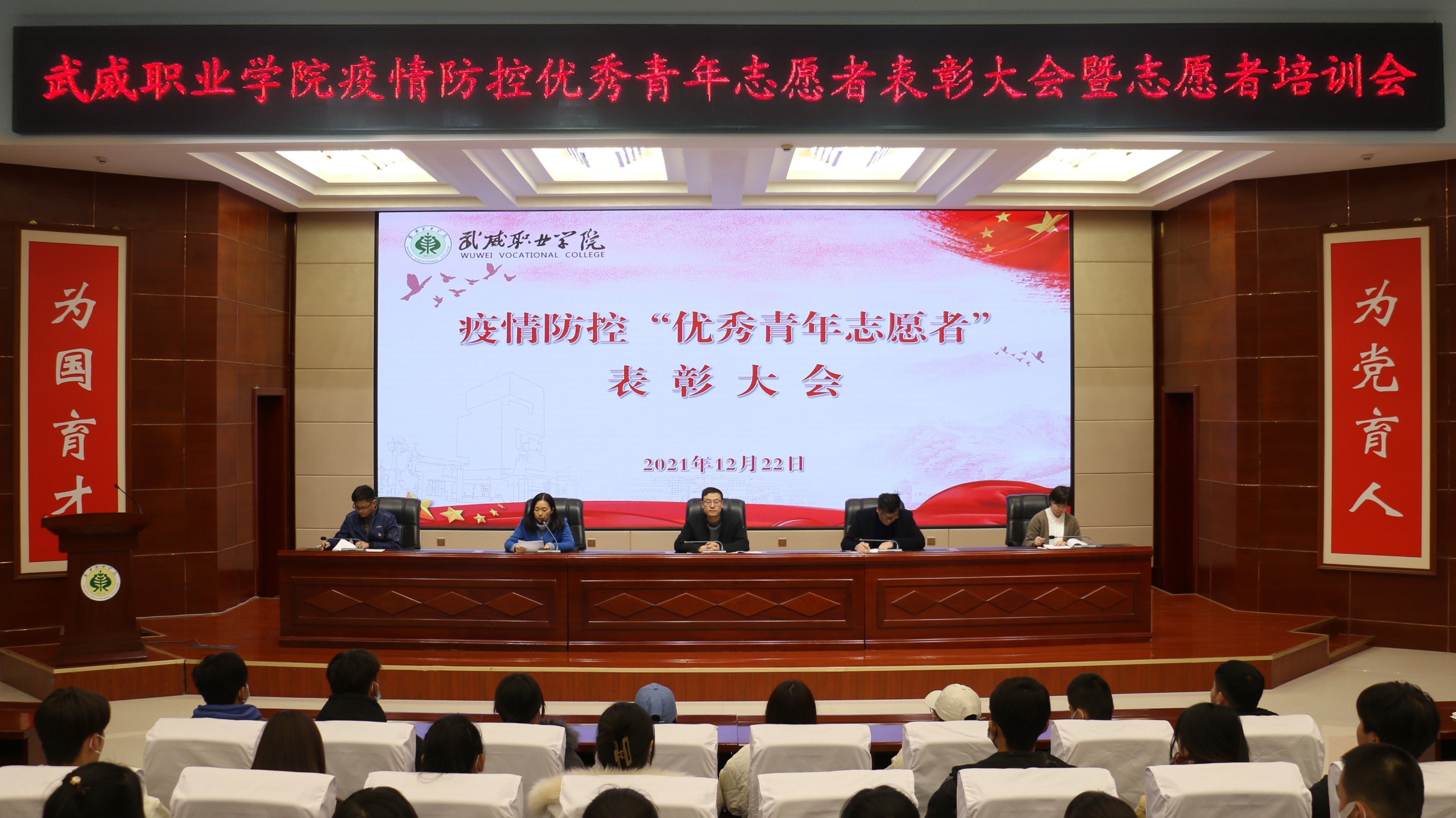 在表彰大會(huì)上,宣讀了《武威職業(yè)學(xué)院關(guān)于對(duì)疫情防控期間優(yōu)秀青年志愿者進(jìn)行通報(bào)表?yè)P(yáng)的決定》,為疫情防控期間優(yōu)秀青年志愿者代表頒發(fā)了榮譽(yù)證書(shū)。