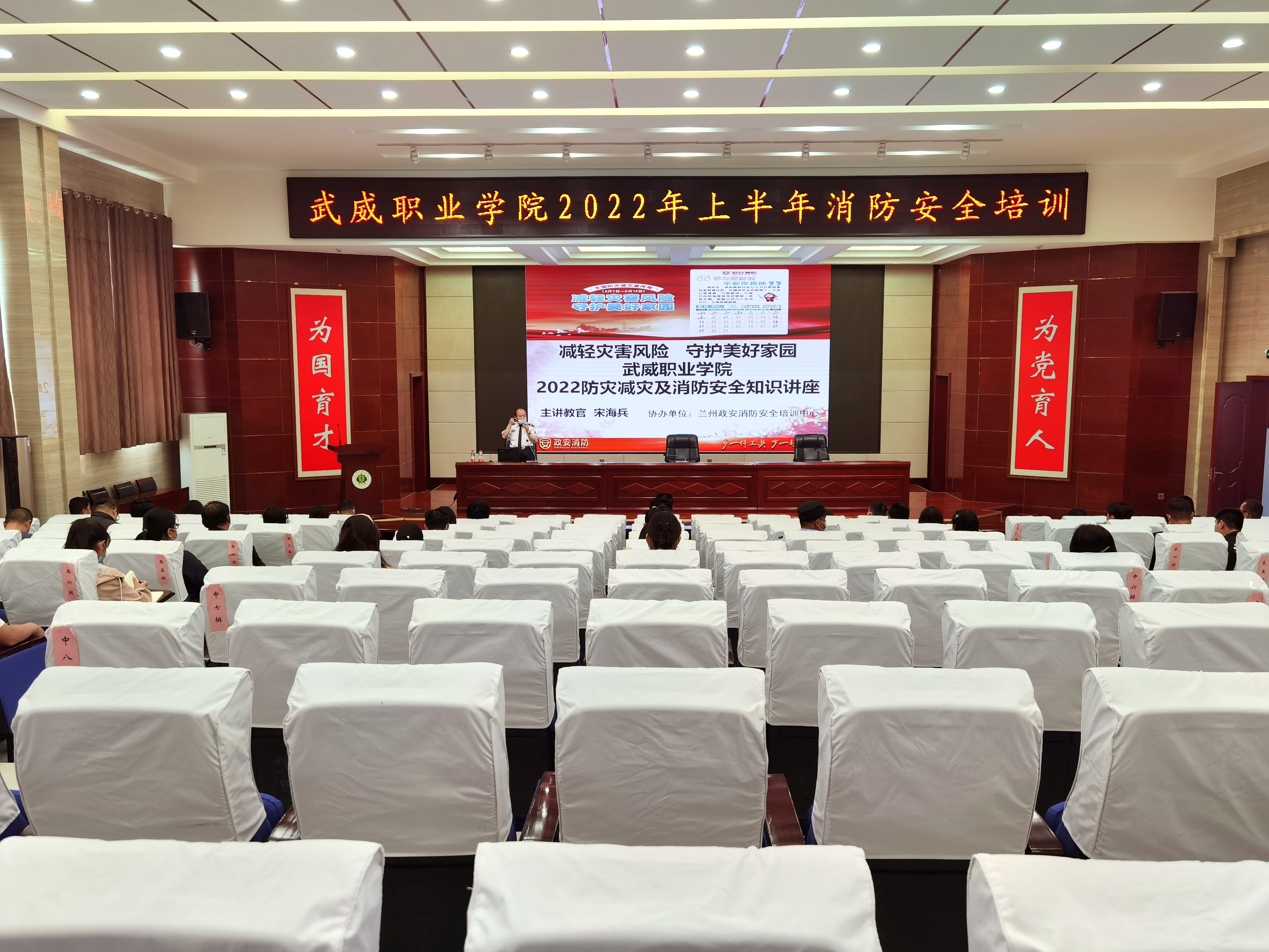 5月18日下午,學(xué)校在大學(xué)生發(fā)展中心菁英廳舉辦了2022年上半年消防安全知識培訓(xùn)。蘭州政安消防教官宋海斌應(yīng)邀作了“減輕災(zāi)害風險,守護美好家園”專題講座。各部門、二級學(xué)院安全信息員、實驗實訓(xùn)室管理員、新進教師和消控室、學(xué)生食堂等重點管理崗位人員參加了培訓(xùn)。