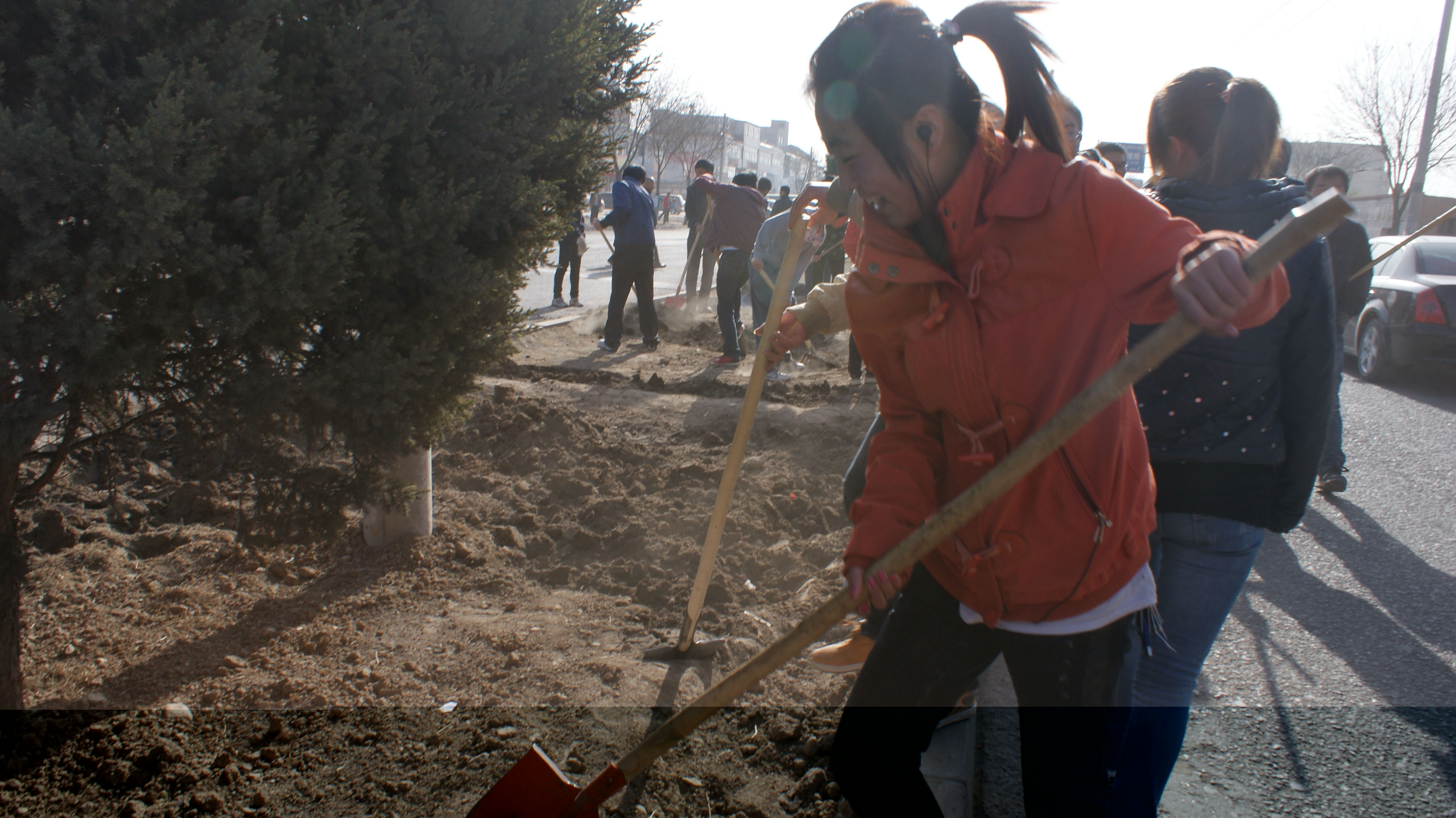 大家早早的來(lái)到了目的地,很快投入了植樹(shù)和凈化街道的隊(duì)伍中。同學(xué)們井然有序,手持鐵鍬,一鍬一鍬的鏟土,一片一片的清理大街,干勁十足。同學(xué)們無(wú)一不閃爍著汗珠,露出幸福的笑容。