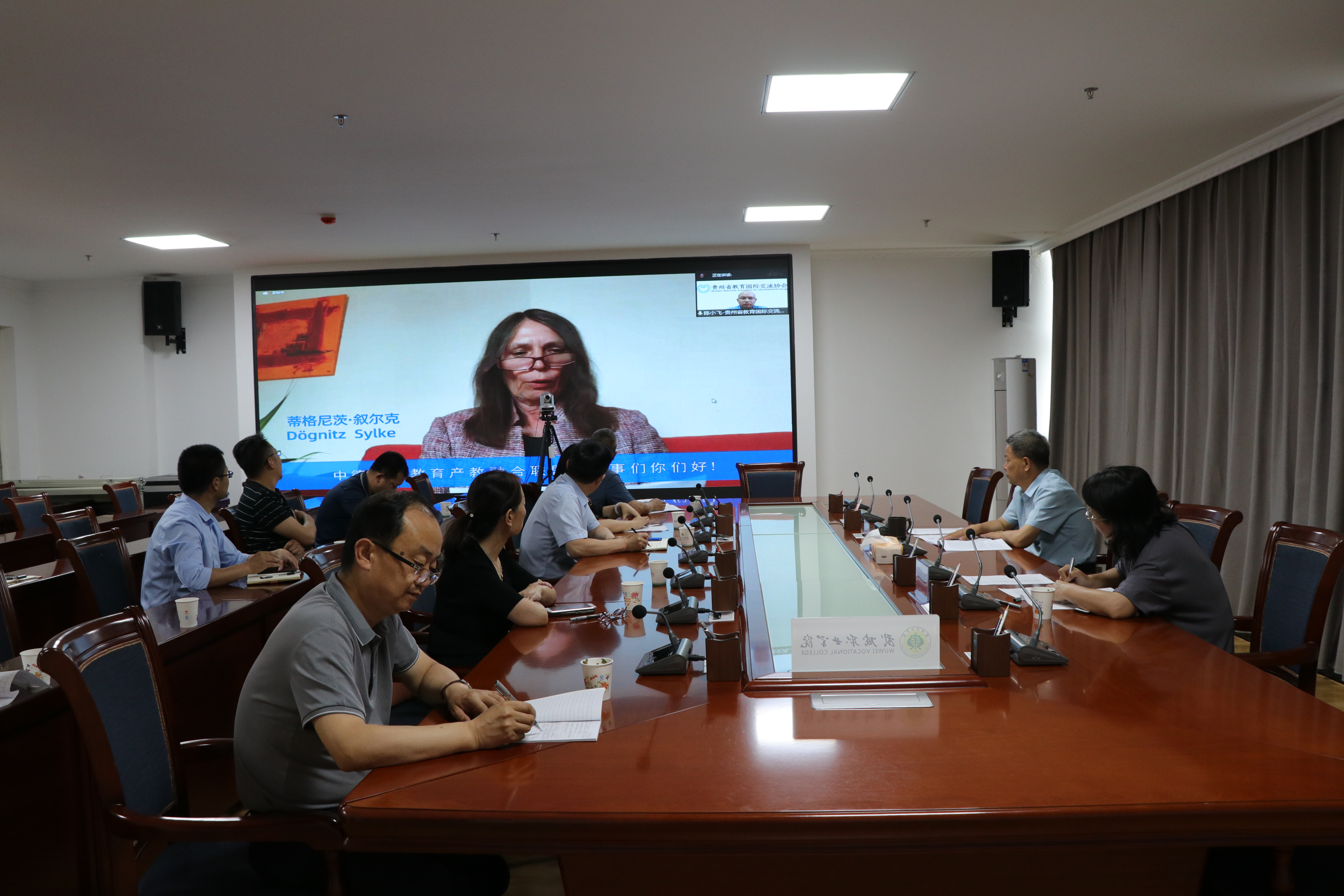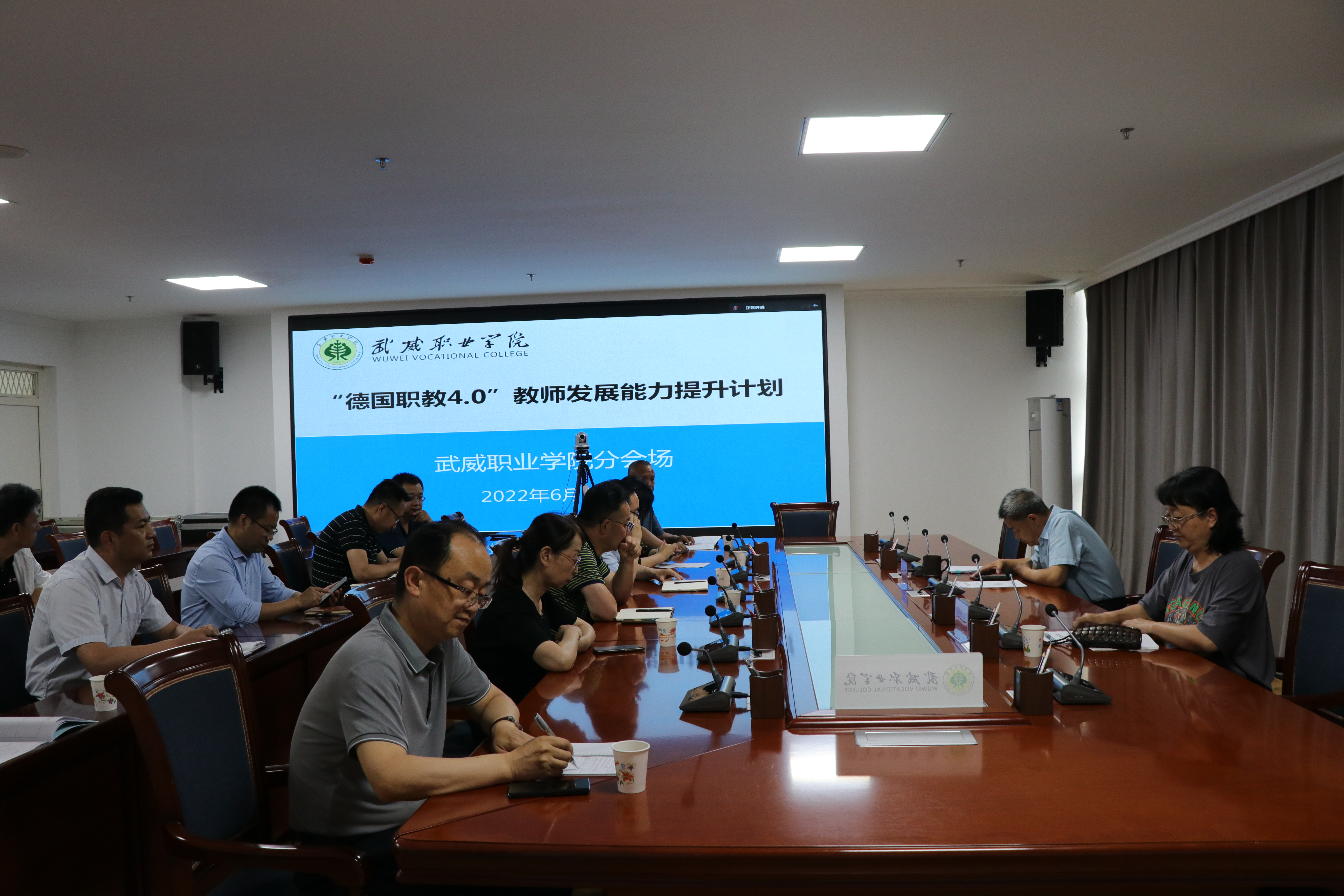 6月20日上午,“德國(guó)職教4.0”教師發(fā)展能力提升計(jì)劃開班典禮暨職教聯(lián)盟云學(xué)院線上師資繼續(xù)教育基地云授牌儀式在云端舉行。學(xué)校設(shè)立分會(huì)場(chǎng),黨委書記、院長(zhǎng)趙明,黨委委員、副校長(zhǎng)田迎春出席開班典禮,國(guó)際合作與交流處、組織人事處、教務(wù)處負(fù)責(zé)人以及各二級(jí)學(xué)院院長(zhǎng)參加典禮。
