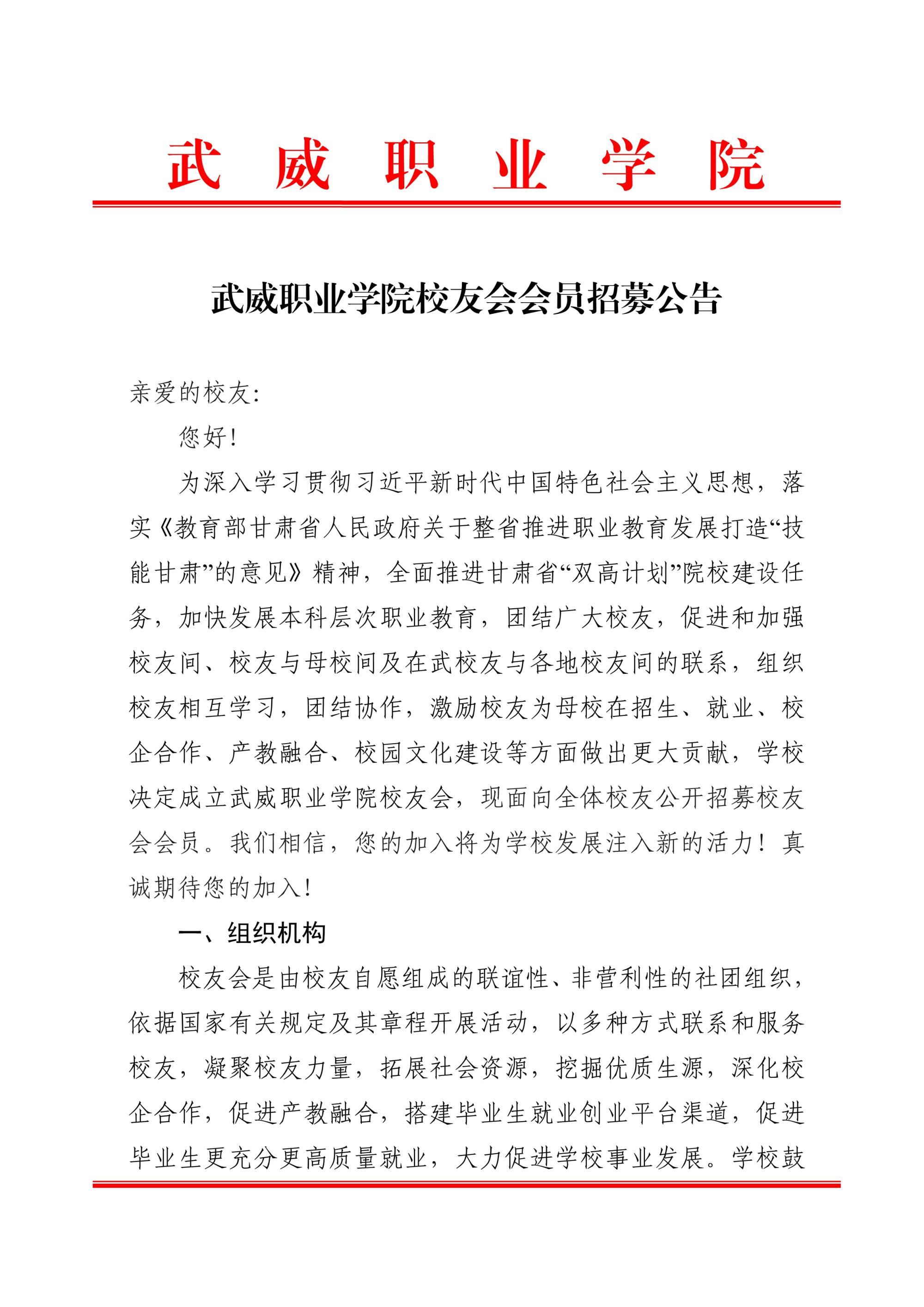 武威職業(yè)學(xué)院校友會(huì)會(huì)員招募公告