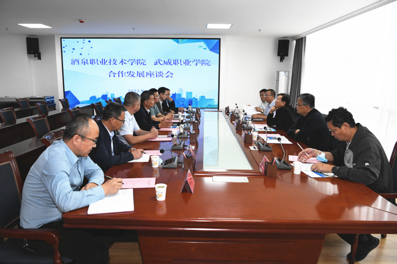 易志軍一行先后到學(xué)校紅色文化藝術(shù)館、翟存祥思想政治理論課名師工作室、武威市體育場、旅游管理專業(yè)實(shí)訓(xùn)室等地考察并在能源科技樓811會議室召開了兩校合作發(fā)展座談會,趙明向易志軍一行詳細(xì)介紹了學(xué)校近年來改革發(fā)展、人才培養(yǎng)、招生就業(yè)、合作辦學(xué)、“雙高計(jì)劃”學(xué)校建設(shè)等情況。易志軍就酒泉職業(yè)技術(shù)學(xué)院建設(shè)發(fā)展情況進(jìn)行了詳細(xì)介紹。雙方就河西走廊職業(yè)教育與區(qū)域產(chǎn)業(yè)互動發(fā)展、融合發(fā)展、高質(zhì)量發(fā)展的路徑和方法進(jìn)行了深入探討,并交流了學(xué)校建設(shè)和管理方面好的經(jīng)驗(yàn)和做法。