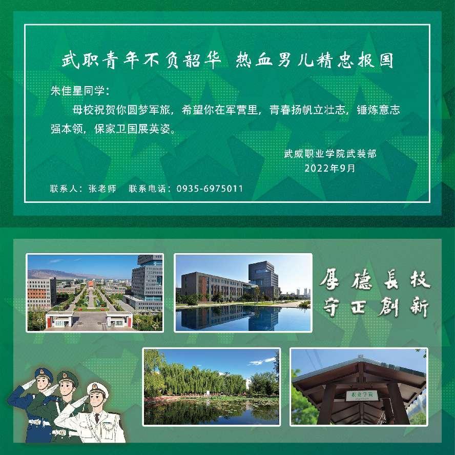 金鑫代表涼州區(qū)人武部和兵役機關,感謝武威職業(yè)學院多年來一直對征兵工作的大力支持,感謝學校為部隊輸送優(yōu)秀青年,并要求入伍大學生,嚴格訓練,做好從學生到戰(zhàn)士的迅速轉(zhuǎn)變,早日成為一名合格的人民子弟兵。