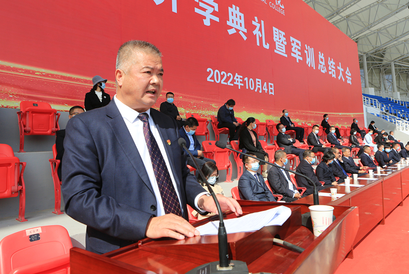金秋的校園陽光明媚,嘹亮的歌聲唱響青春。10月4日上午9時,在莊嚴隆重的升國旗儀式結(jié)束后,2022級新生開學典禮暨軍訓總結(jié)大會在體育場拉開了帷幕。學校黨委書記、校長趙明出席大會并講話,涼州區(qū)人武部上校政委丁俊強受邀出席。校領導翟存祥、王永緒、田迎春、何毅、陳曉煜、張開禮出席大會。大會由學校黨委委員、副校長王守云主持。