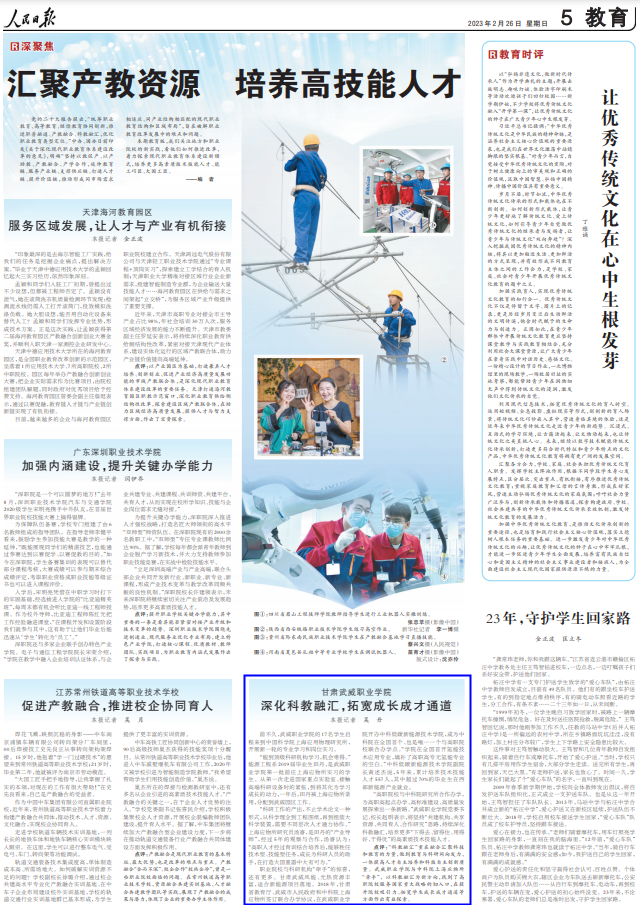 武威職業(yè)學(xué)院深化科教融匯,拓寬成長(zhǎng)成才通道獲人民日?qǐng)?bào)宣傳報(bào)道