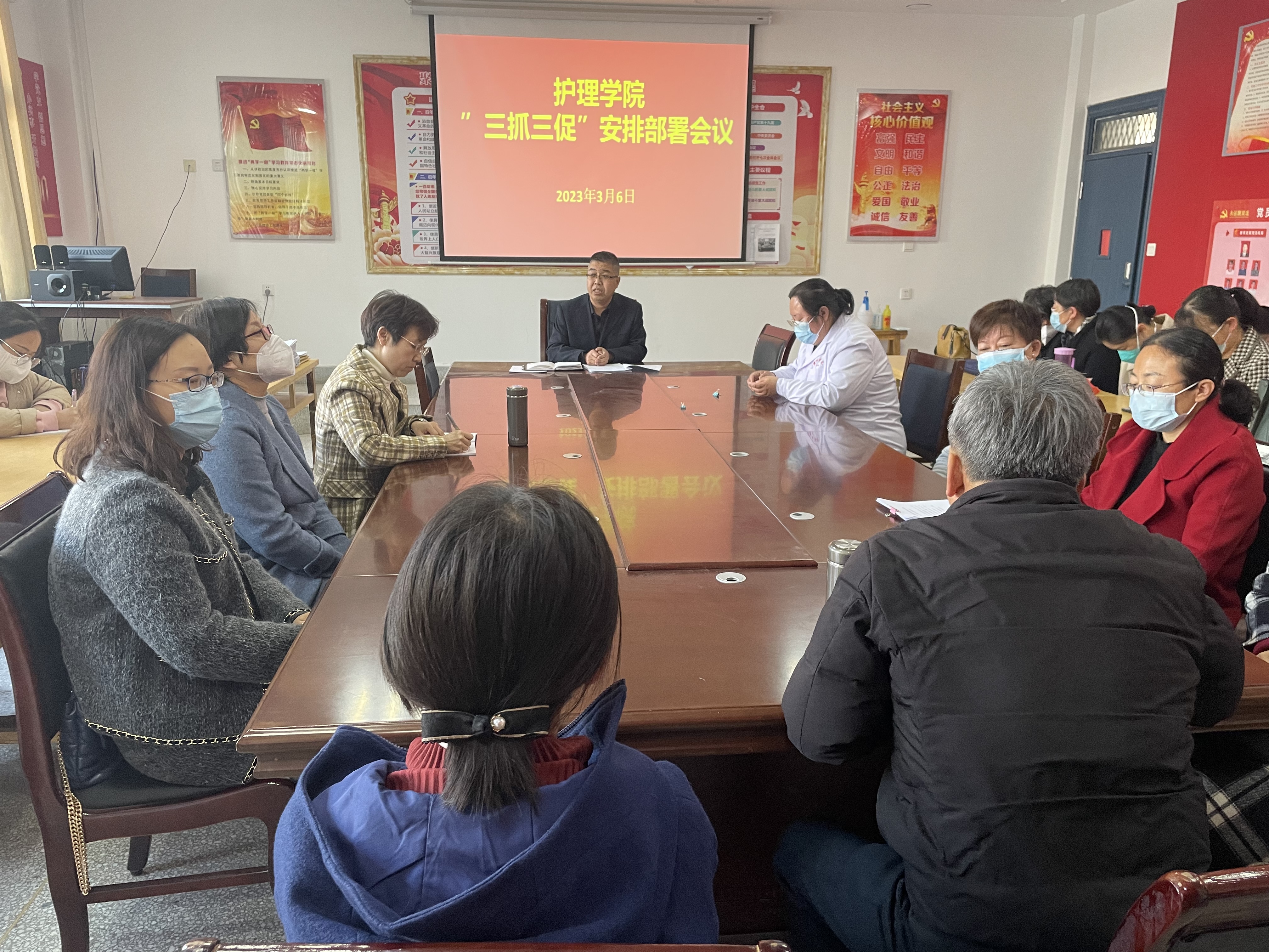 3月6日,護(hù)理學(xué)院召開了“三抓三促”行動(dòng)動(dòng)員部署會(huì)議。會(huì)議由學(xué)院黨總支書記張建輝主持。