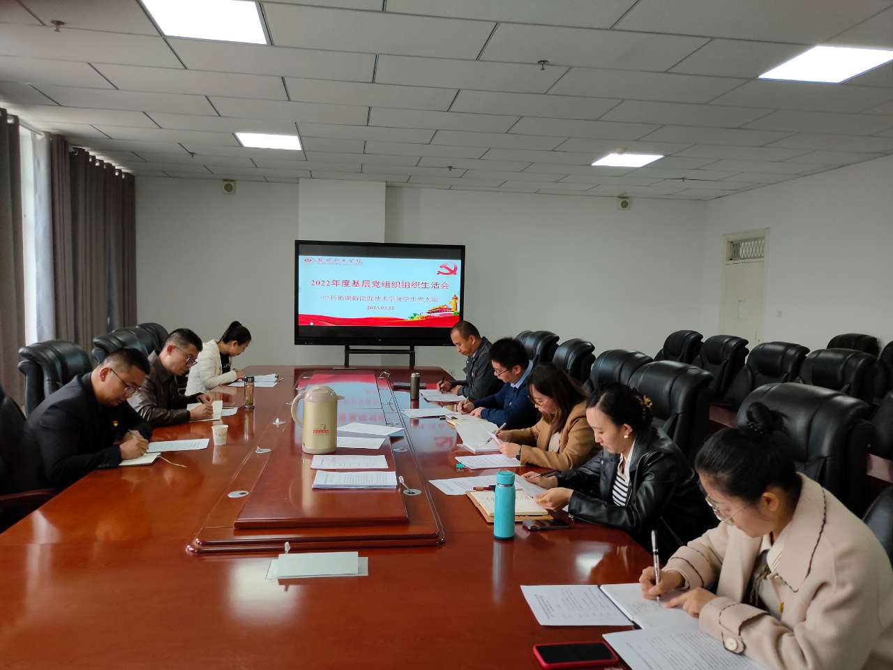 為深入學(xué)習(xí)貫徹黨的二十大精神,堅持不懈用習(xí)近平新時代中國特色社會主義思想凝心鑄魂,不斷提升基層黨組織政治功能和組織力,進一步激發(fā)黨員充分發(fā)揮先鋒模范作用,按照校黨委統(tǒng)一部署,3月15日下午,中科低碳新能源技術(shù)學(xué)院教師黨支部、學(xué)生黨支部在能源科技樓610、604召開2022年度基層黨組織組織生活會和開展民主評議黨員活動。會議由兩個支部書記主持,支部全體黨員參加,學(xué)校第二督導(dǎo)組成員張世亮、許中璞全程參與督導(dǎo)。