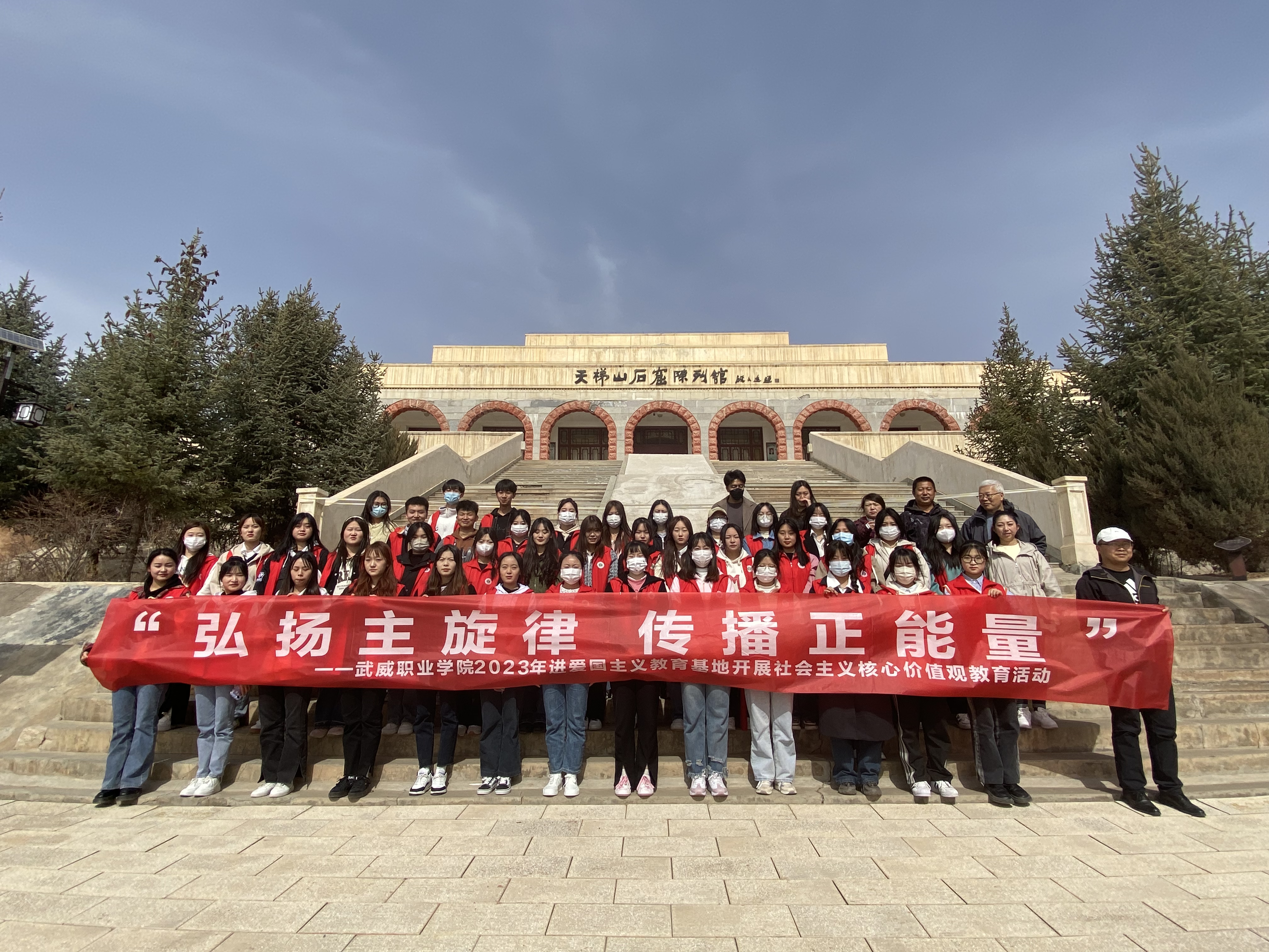 為扎實(shí)推進(jìn)愛國主義教育和國防教育,加強(qiáng)學(xué)生的德育教育和政治思想工作,激勵(lì)廣大師生樹立堅(jiān)定的理想信念,厚植愛國情懷,走好新時(shí)代長(zhǎng)征路。2023年3月17至18日,藝術(shù)與教育學(xué)院組織師生前往武威市天梯山石窟和西郊公園國防教育基地,開展愛國主義教育實(shí)踐活動(dòng)。