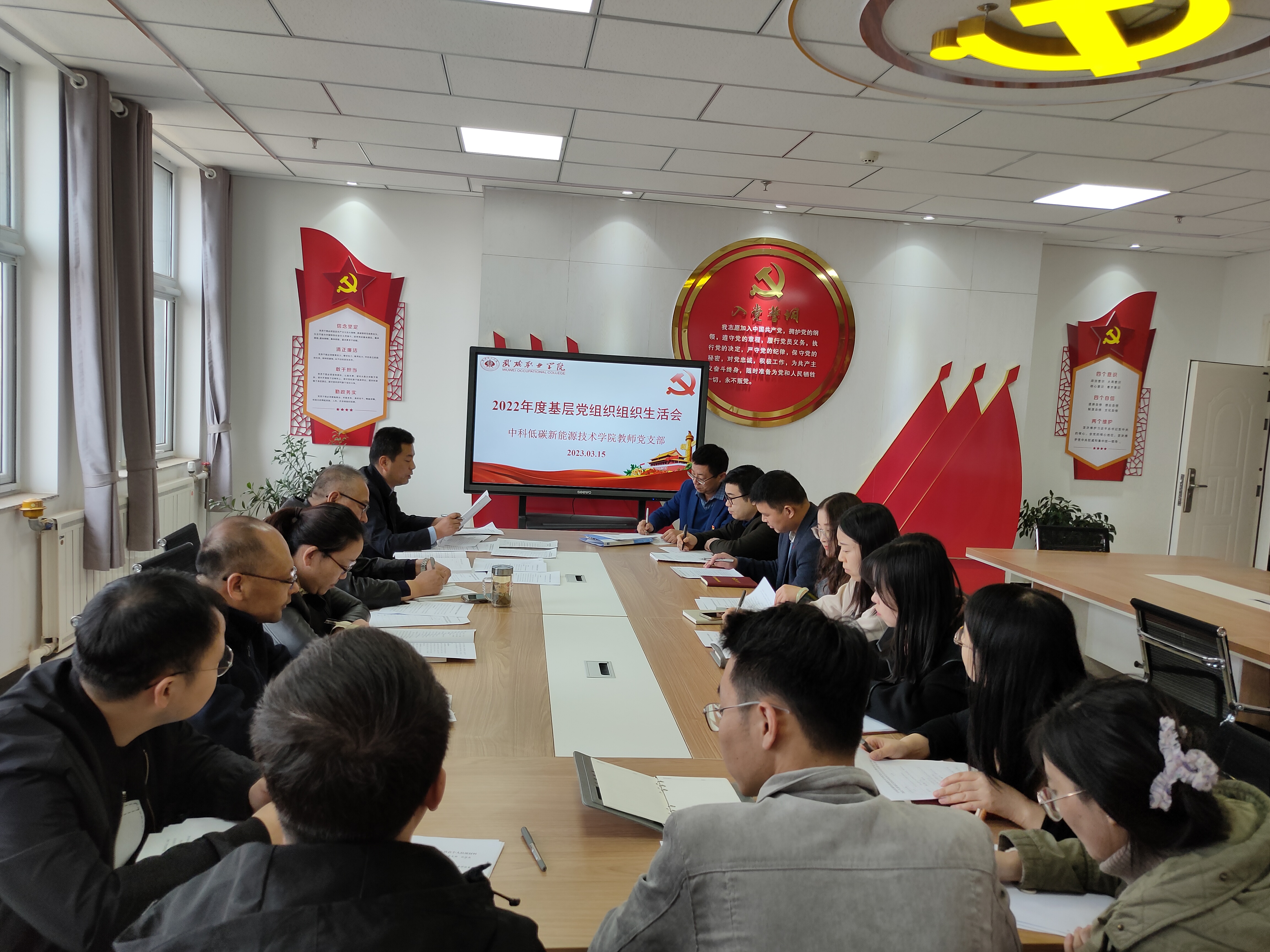 為深入學習貫徹黨的二十大精神,堅持不懈用習近平新時代中國特色社會主義思想凝心鑄魂,不斷提升基層黨組織政治功能和組織力,進一步激發(fā)黨員充分發(fā)揮先鋒模范作用,按照校黨委統(tǒng)一部署,3月15日下午,中科低碳新能源技術學院教師黨支部、學生黨支部在能源科技樓610、604召開2022年度基層黨組織組織生活會和開展民主評議黨員活動。會議由兩個支部書記主持,支部全體黨員參加,學校第二督導組成員張世亮、許中璞全程參與督導。