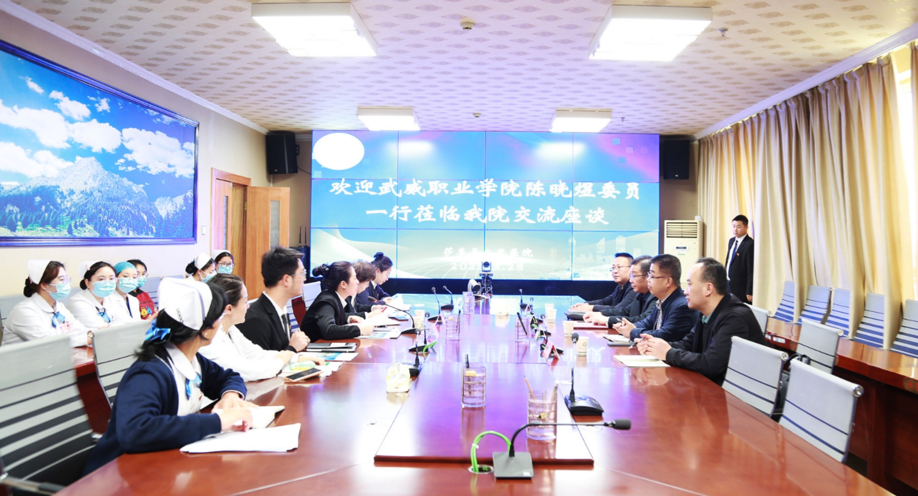 在和田地區(qū)人民醫(yī)院訪企拓崗座談會(huì)上,陳曉煜介紹了學(xué)校發(fā)展情況和本次走訪醫(yī)院的工作任務(wù),希望進(jìn)一步加強(qiáng)校院深度合作,共同優(yōu)化人才培養(yǎng)方案和課程設(shè)置,提升學(xué)校人才培養(yǎng)質(zhì)量,為邊疆衛(wèi)生事業(yè)發(fā)展提供人才支持。張建輝從學(xué)校二級(jí)學(xué)院設(shè)置、師資隊(duì)伍、教育教學(xué)、開設(shè)專業(yè)、人才培養(yǎng)、畢業(yè)生實(shí)習(xí)就業(yè)等方面做了介紹。和田地區(qū)人民醫(yī)院院長(zhǎng)艾尼玩·阿布都熱依木介紹了醫(yī)院的基本情況及用人需求,對(duì)我校畢業(yè)生給予了高度評(píng)價(jià)。醫(yī)院現(xiàn)有我校醫(yī)藥衛(wèi)生類專業(yè)畢業(yè)生86人,其中13名護(hù)理專業(yè)畢業(yè)生擔(dān)任相關(guān)科室護(hù)士長(zhǎng),成為醫(yī)院護(hù)理崗位中堅(jiān)力量,他希望學(xué)校培養(yǎng)更多優(yōu)秀畢業(yè)生到醫(yī)院實(shí)習(xí)就業(yè)。