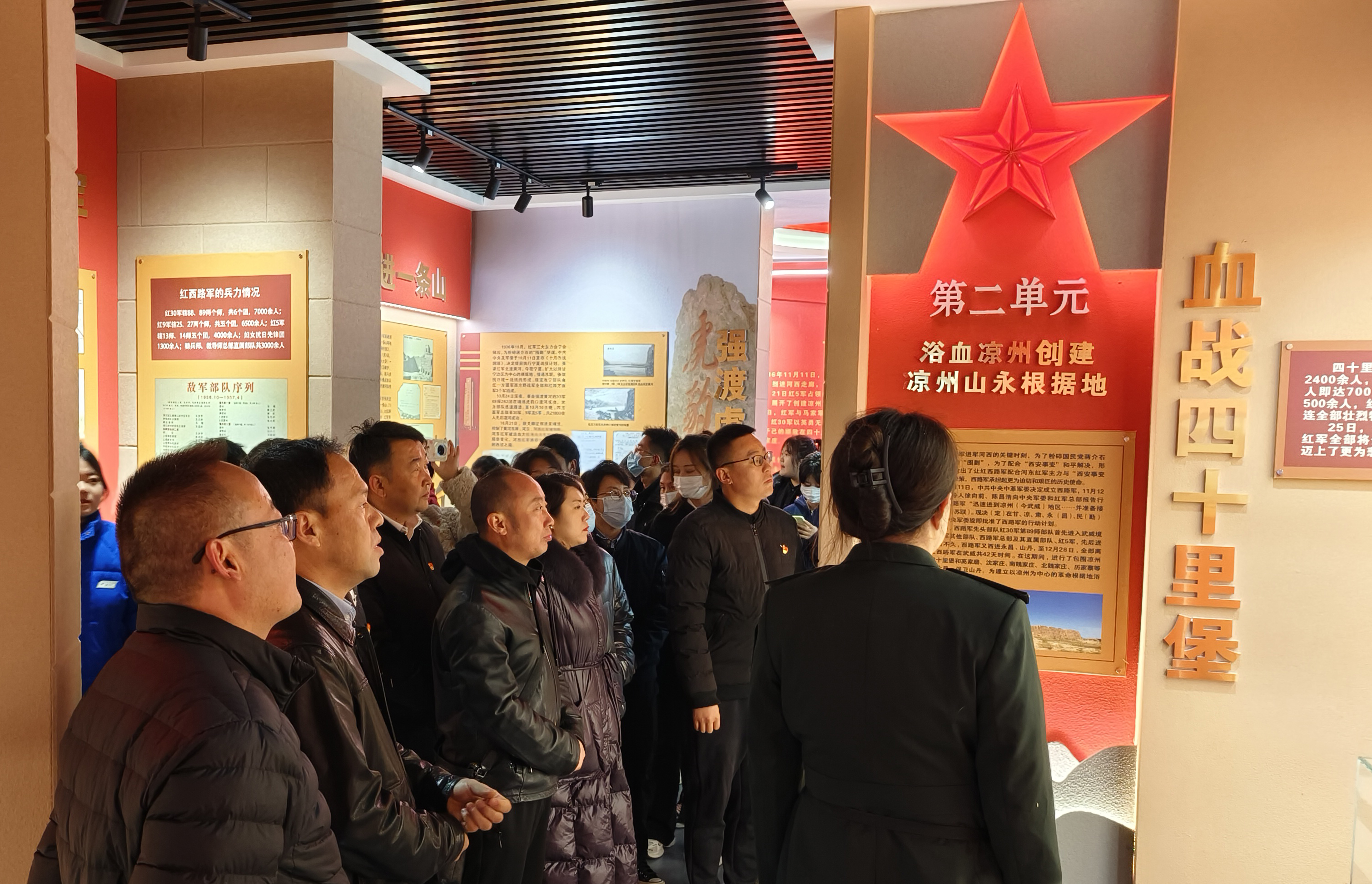 悼念儀式后,在講解員帶領下,大家有序參觀了紀念館,瞻仰了革命烈士生平事跡、史料和遺物,詳細了解了涼州戰(zhàn)役的歷史,莊嚴地重溫了入黨誓詞。
