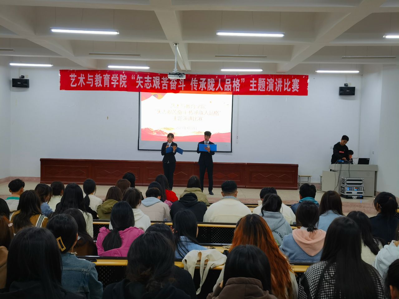 2023年4月2日,藝術(shù)與教育學院在勵勤樓階梯教室舉辦“矢志艱苦奮斗·傳承隴人品格”主題演講比賽。全院200多名學生觀看了比賽。