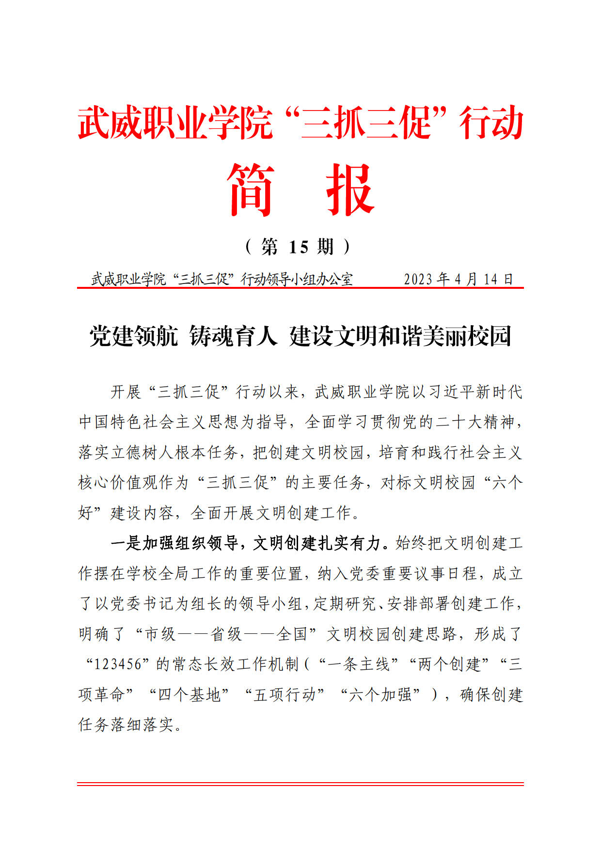 簡報第15期:黨建領航 鑄魂育人 建設文明和諧美麗校園