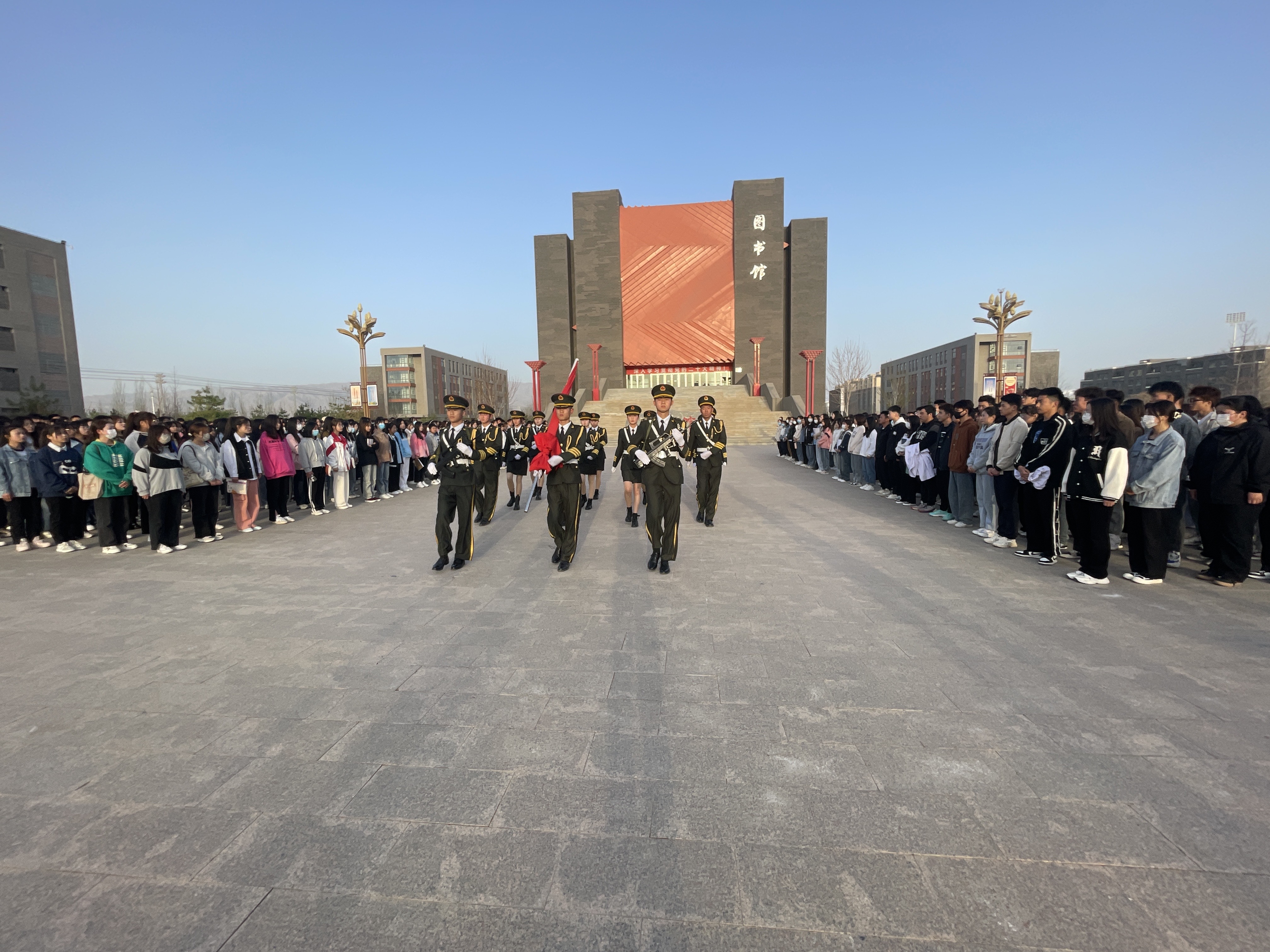 4月17日上午,醫(yī)學(xué)技術(shù)學(xué)院在學(xué)校圖書館東廣場舉行升國旗儀式,全體師生參加。
