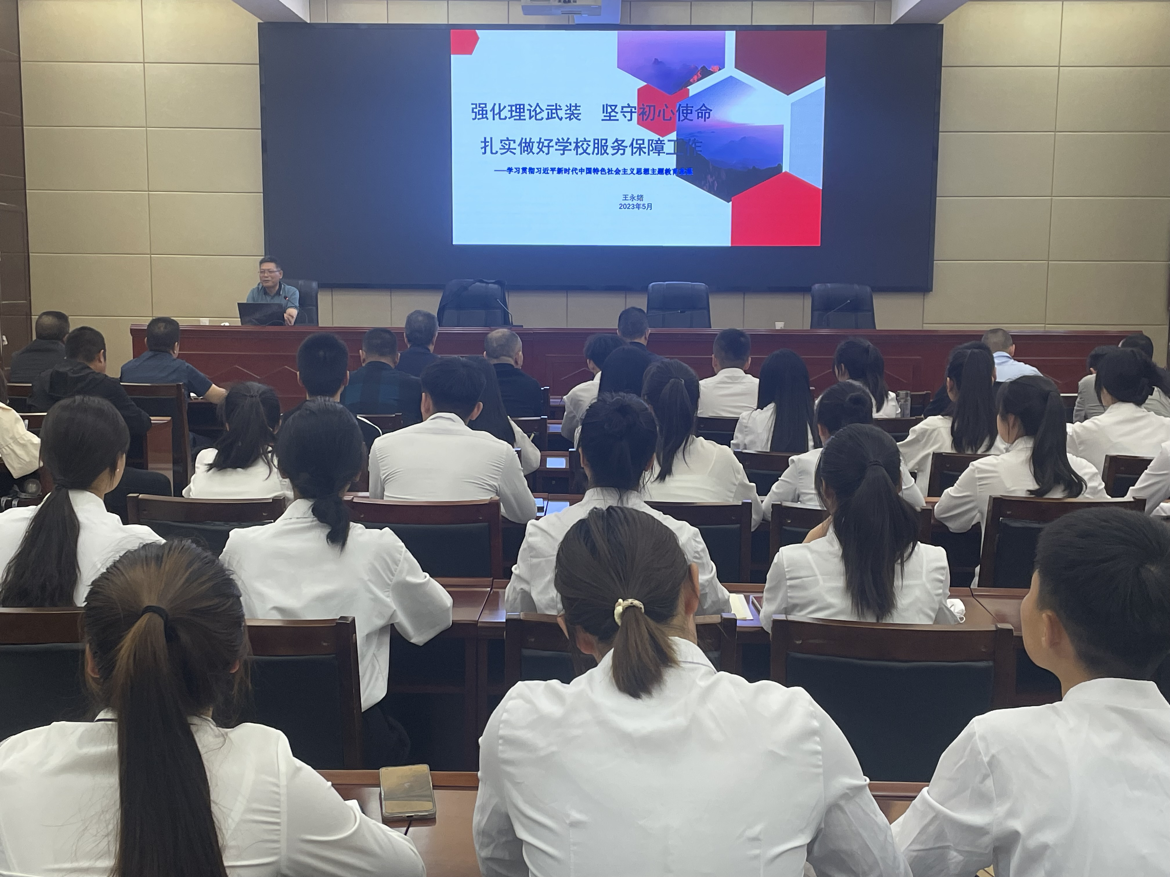 按照學(xué)校黨委關(guān)于學(xué)習(xí)貫徹習(xí)近平新時代中國特色社會主義思想主題教育的部署安排,5月31日,學(xué)校黨委委員、副校長王永緒講授了題為《強(qiáng)化理論武裝? 堅守初心使命》的專題黨課,后勤管理處、基建處、國有資產(chǎn)管理處、護(hù)理學(xué)院和信息技術(shù)學(xué)院全體黨員、預(yù)備黨員、發(fā)展對象等80余人聆聽了黨課。