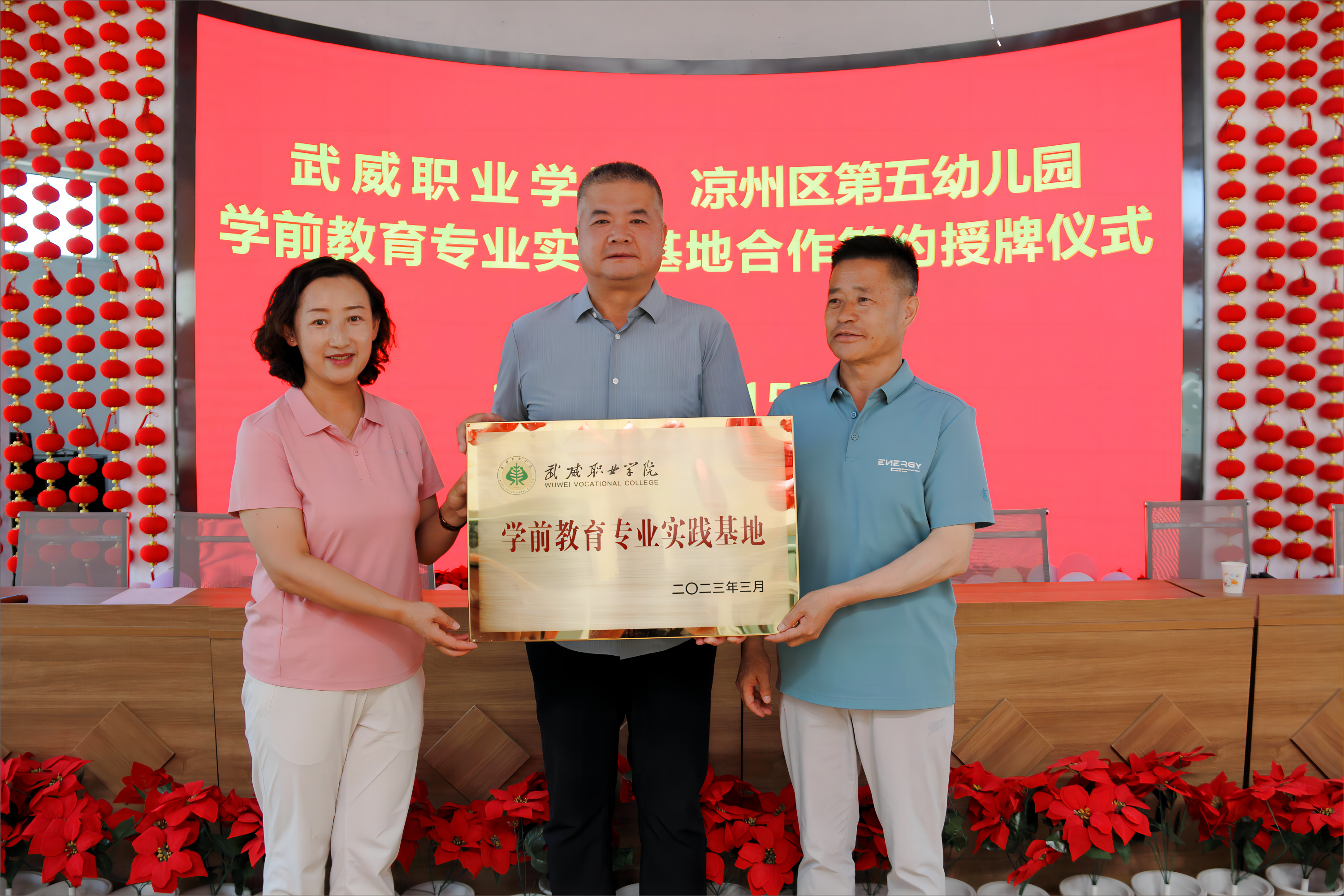6月15日,武威職業(yè)學院學前教育專業(yè)實踐基地授牌儀式分別在武威市第二實驗幼兒園、涼州區(qū)第五幼兒園舉行。學校黨委委員、副校長王守云,武威市第二實驗幼兒園園長羅亞莉,涼州區(qū)第五幼兒園園長張俊山出席授牌儀式。藝術與教育學院教師代表,市區(qū)幼兒園領導班子成員及部分教師參加授牌儀式。