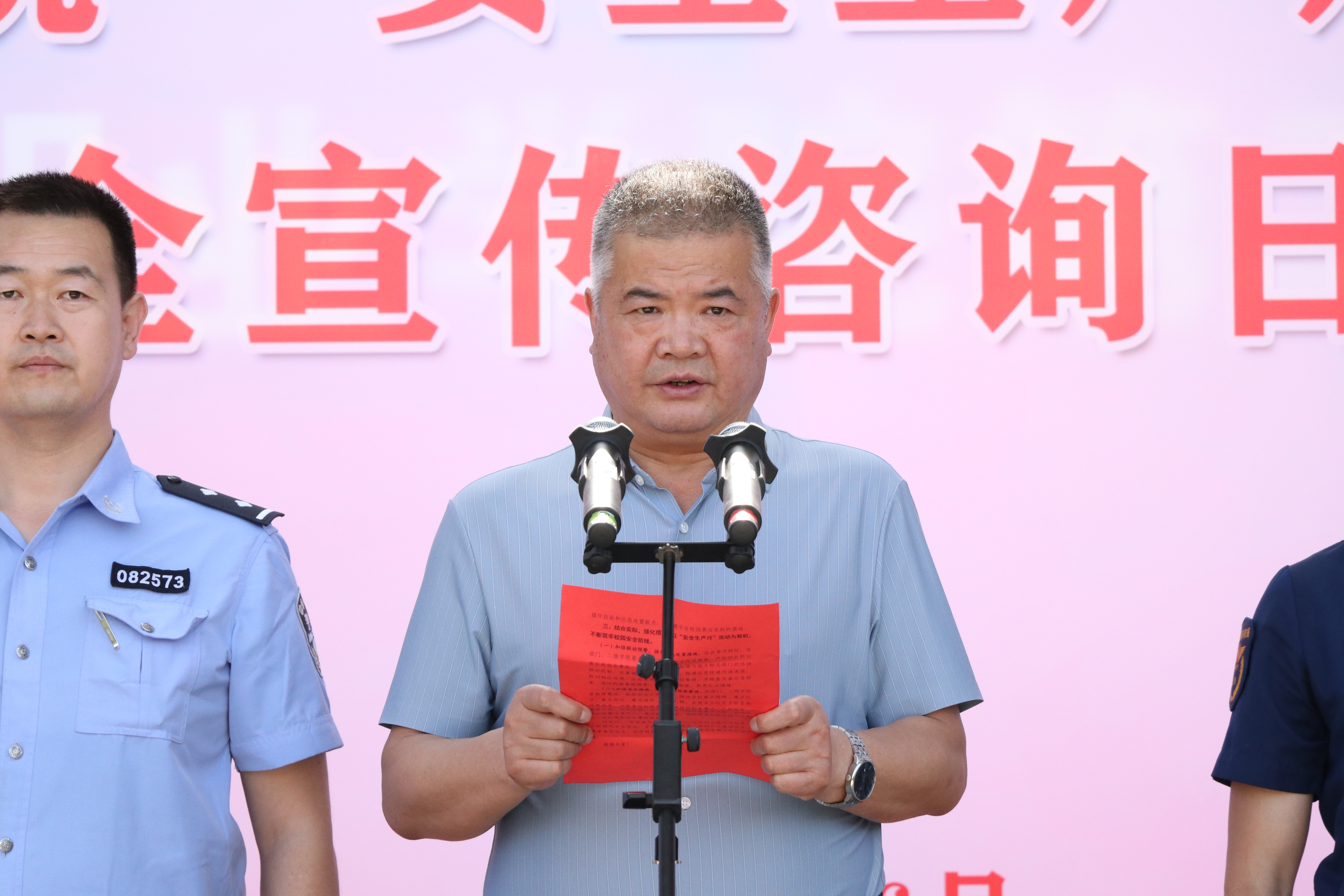 6月16日下午,學(xué)校組織開展“安全生產(chǎn)月”活動啟動儀式暨“6·16”安全宣傳咨詢?nèi)栈顒?,拉開了以“人人講安全、個(gè)個(gè)會應(yīng)急”為主題的全國第22個(gè)“安全生產(chǎn)月”活動序幕。學(xué)校黨委委員、副校長王守云、西關(guān)派出所副所長藺福鵬、各相關(guān)部門及二級學(xué)院負(fù)責(zé)人出席活動。