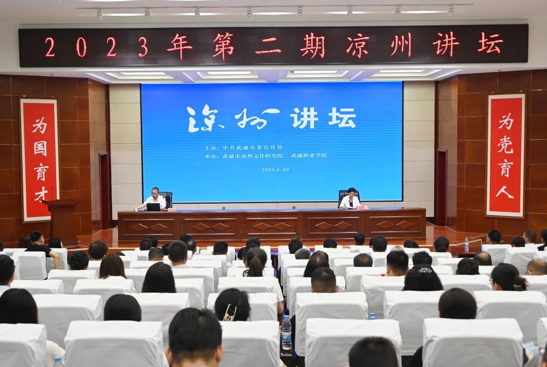 本期講壇由武威市委宣傳部主辦,市涼州文化研究院、武威職業(yè)學院承辦。市直部門(單位)、“兩代表一委員”、武威職業(yè)學院師生共200多人參加。本次講座也是武威職業(yè)學院綠洲講壇系列講座之一。