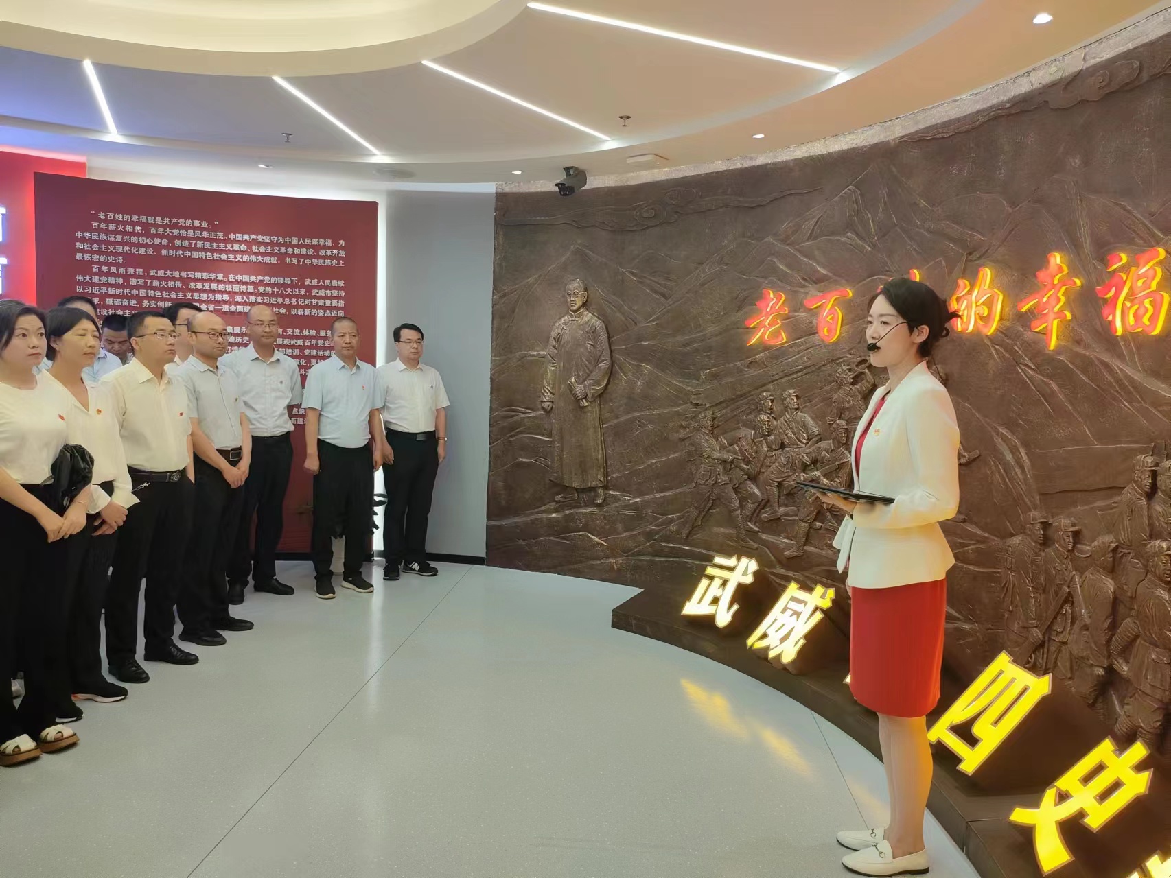 全體黨員懷著崇敬的心情,在講解員的引導(dǎo)下,大家有序參觀了黨性教育基地序廳、主廳、智慧黨建廳、紅色文創(chuàng)廳、尾廳和初心講堂。一件件實(shí)物、一幅幅圖片、一段段故事,把大家?guī)Щ氐侥嵌尾憠验煹膷槑V歲月,共同追憶了武威發(fā)展的光輝歷程和紅色歷史,對武威發(fā)展的輝煌歷程有了更加深入的了解和認(rèn)識,對共產(chǎn)黨人的初心和使命有了更深刻的理解和感悟。在初心講堂,黨員們共同觀看紅色專題片《先鋒之光》,重溫中國共產(chǎn)黨人為了建設(shè)新中國拋頭顱、灑熱血的崢嶸歲月。