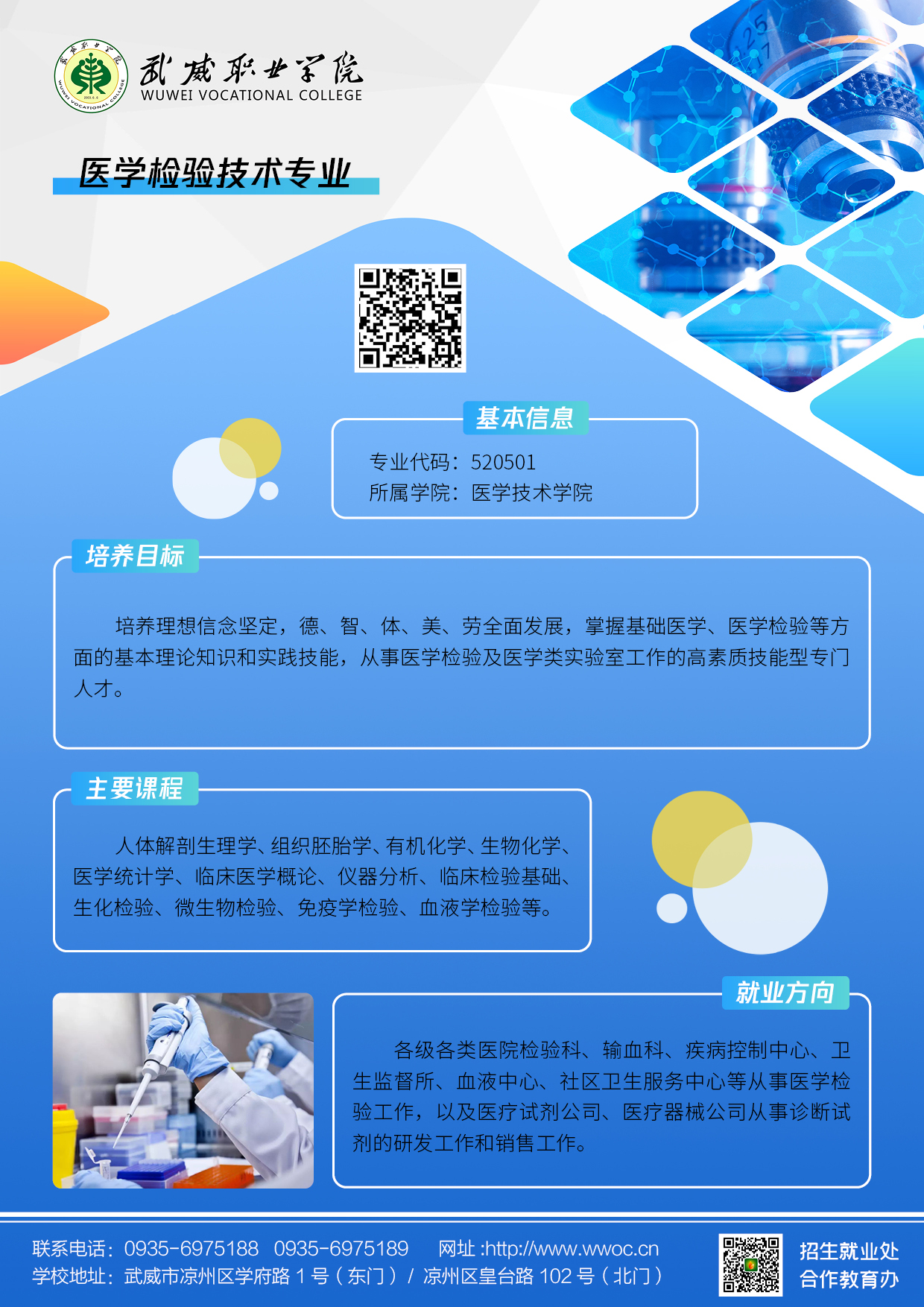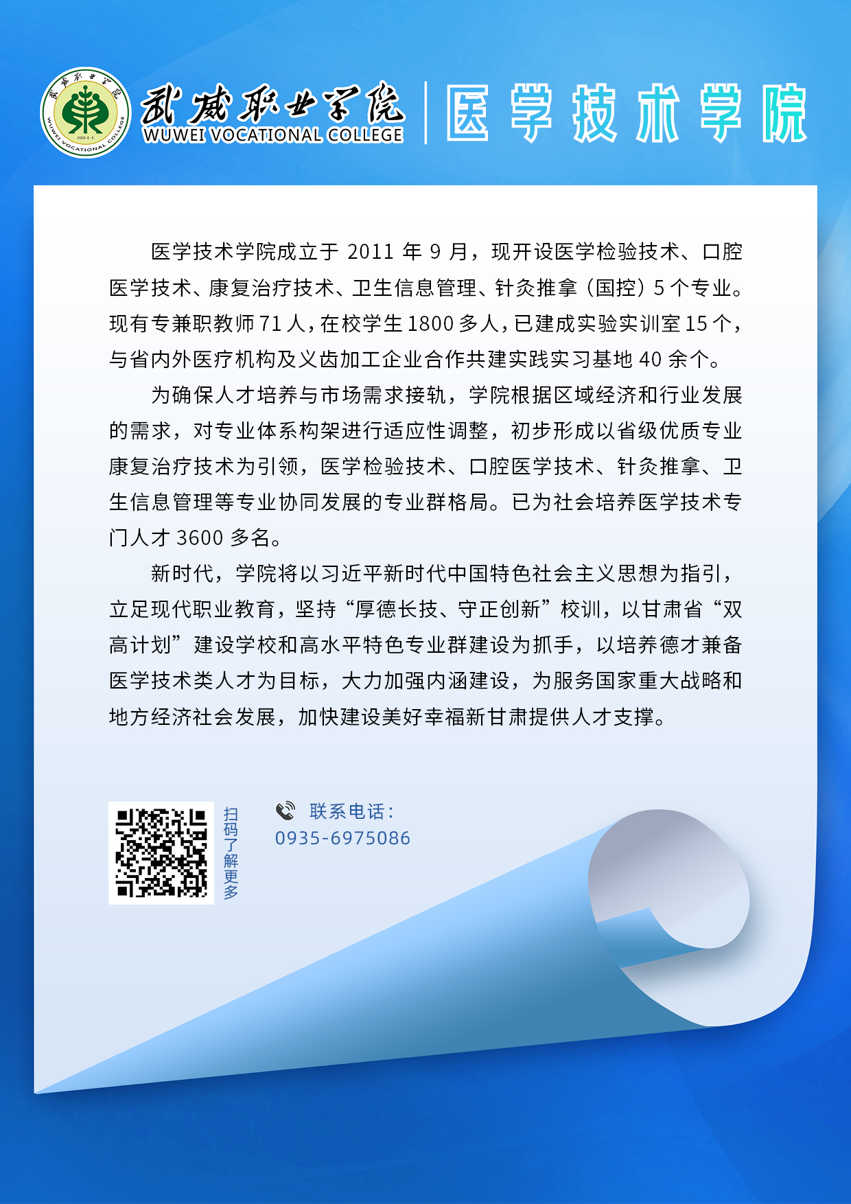 武威職業(yè)學(xué)院二級學(xué)院專業(yè)簡介丨醫(yī)學(xué)技術(shù)學(xué)院