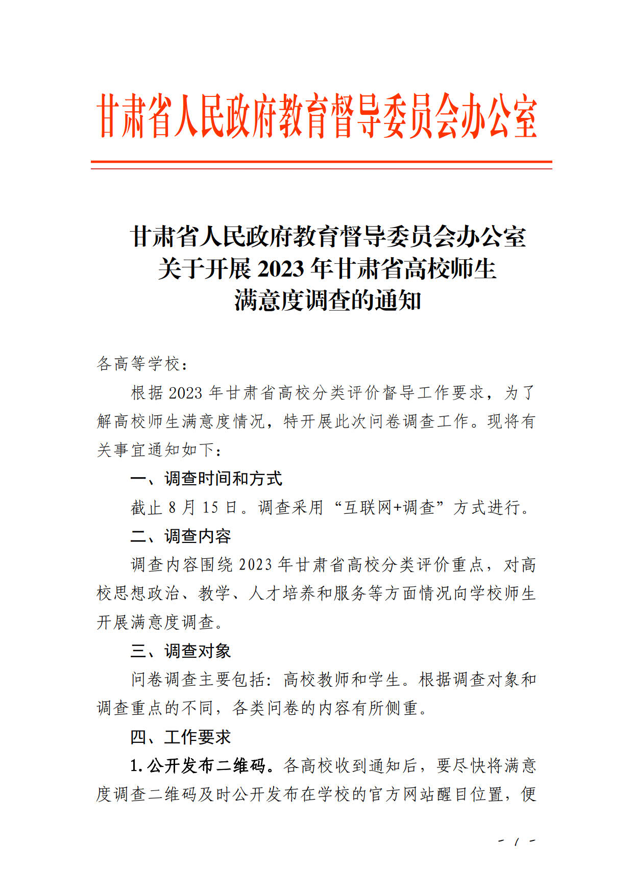 甘肅省人民政府教育督導(dǎo)委員會(huì)辦公室關(guān)于開(kāi)展 2023年甘肅省高校師生滿意度調(diào)查的通知