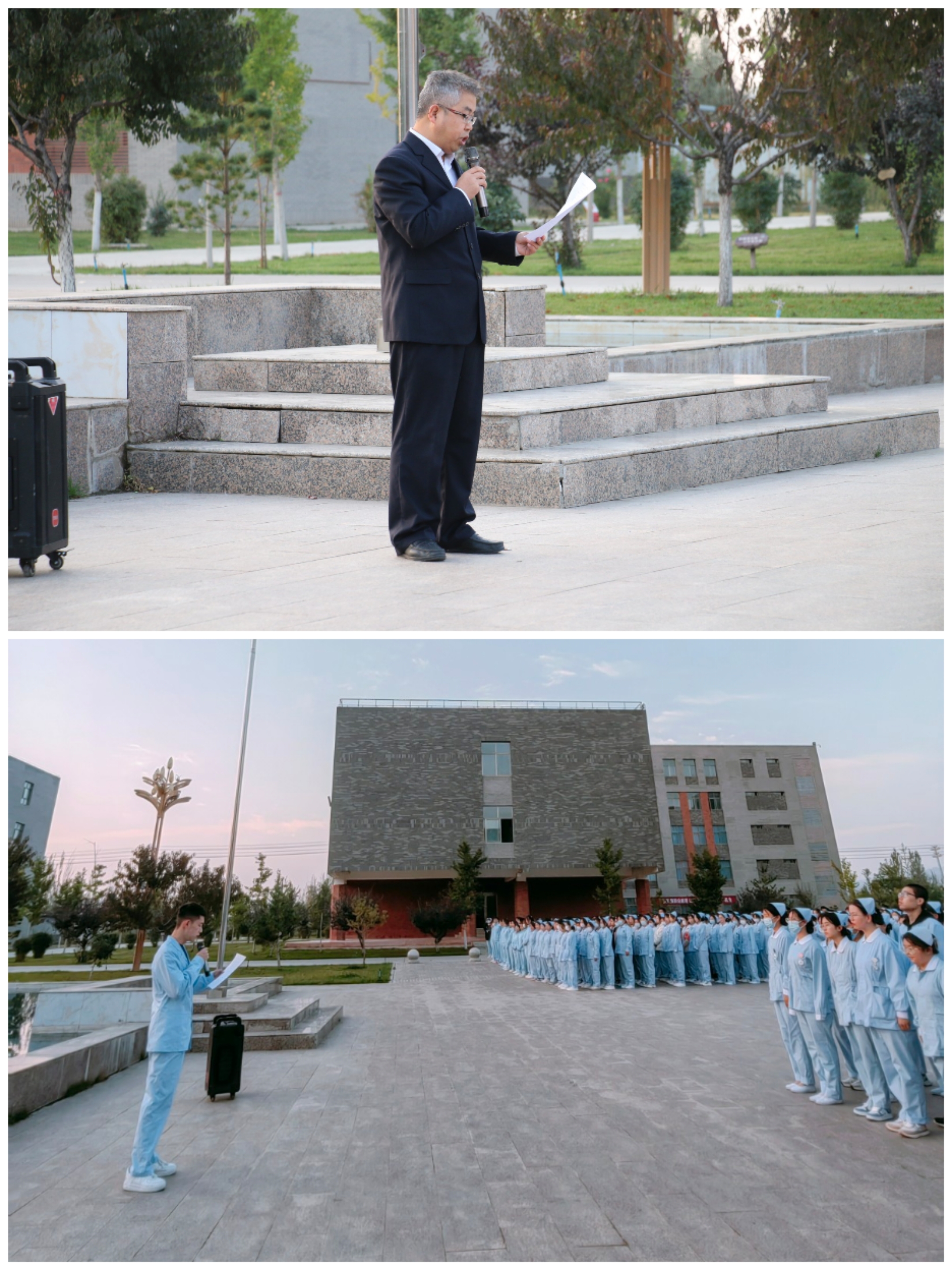 10月9日清晨,護(hù)理學(xué)院在圖書館前廣場舉行升國旗儀式,學(xué)院黨總支書記張建輝、團(tuán)委書記楊杰、全體班主任及2022、2023級(jí)全體學(xué)生參加此次升旗儀式,儀式由楊杰主持。