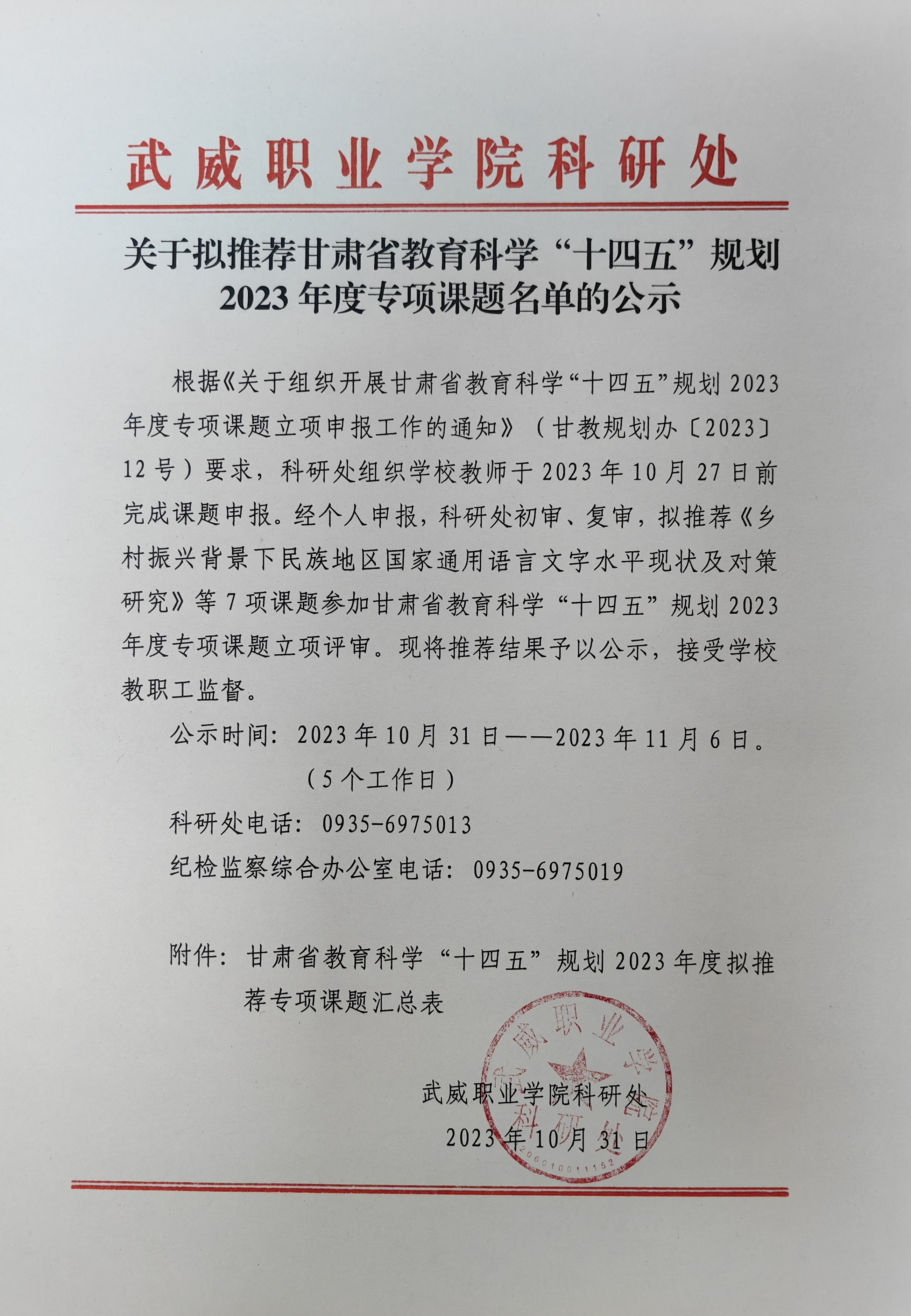 關(guān)于擬推薦甘肅省教育科學(xué)“十四五”規(guī)劃2023年度專項(xiàng)課題名單的公示