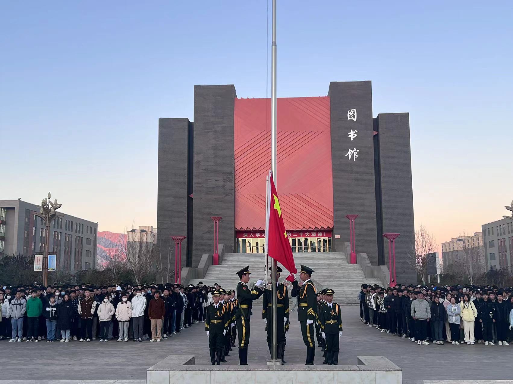 國旗護衛(wèi)隊邁著整齊劃一的步伐,在鏗鏘有力的腳步聲中護衛(wèi)著五星紅旗入場。伴著莊嚴嘹亮的國歌聲,旗手振臂一揮,鮮艷的五星紅旗徐徐展開。在師生的莊嚴注視中,五星紅旗緩緩升起,在熠熠晨光中迎風飄揚。