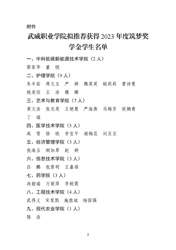 武威職業(yè)學院關(guān)于2023年度筑夢獎學金評選結(jié)果的公示